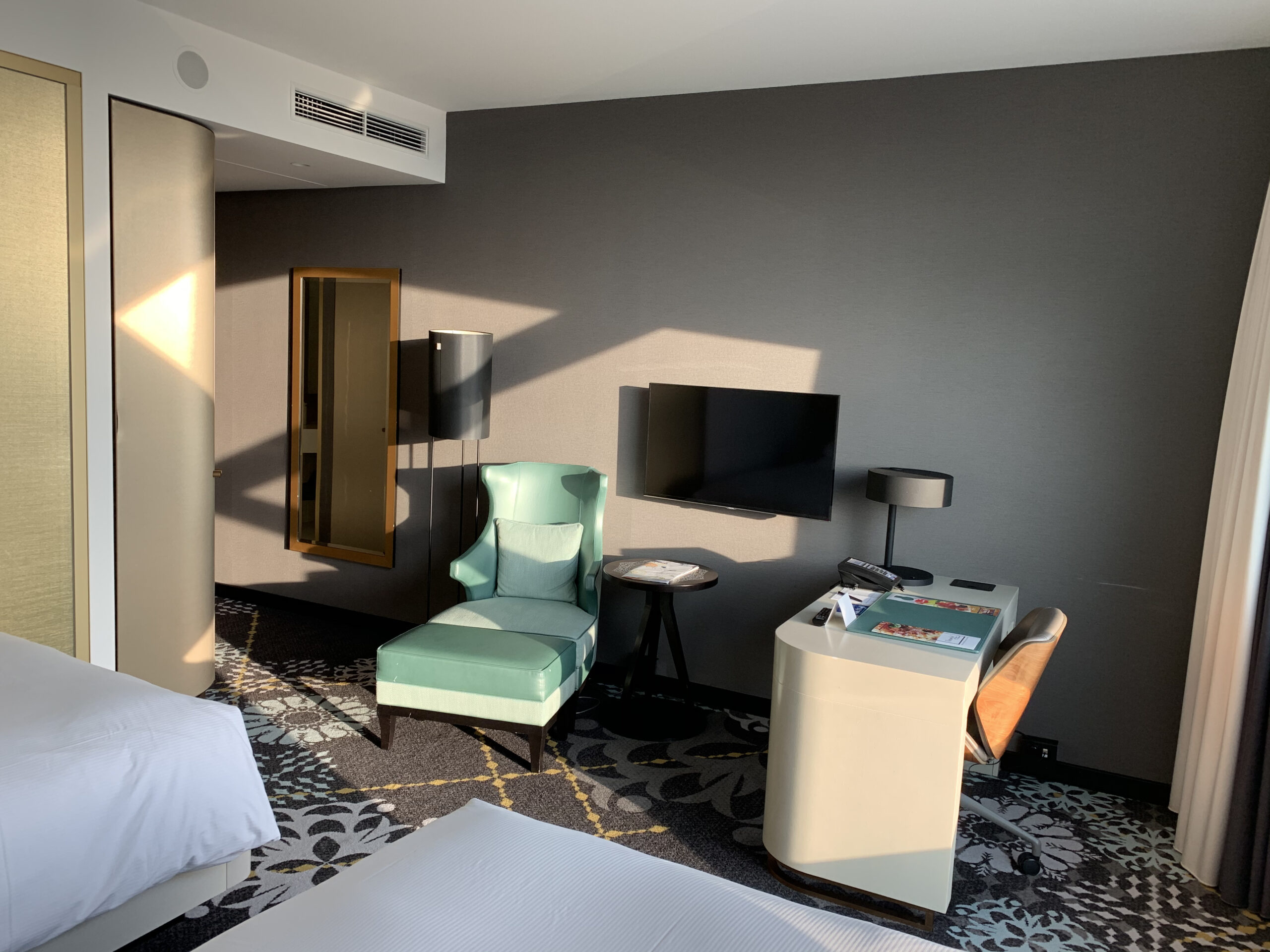 Hier erwartete mich doch eine nette Überraschung mit einem kleinem Upgrade in ein sogenanntes King Deluxe Room with Airport View”. Für mich als Aviatik Fan sicherlich der grösste Gefallen da ich den Flughafen und die Flugzeuge betrachten konnte. Gebucht hatte ich (wie eigentlich fast immer die günstigste Kategorie)