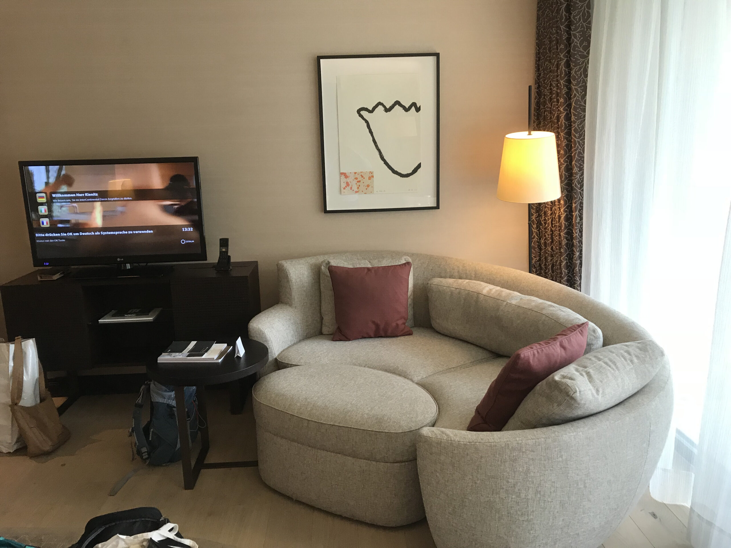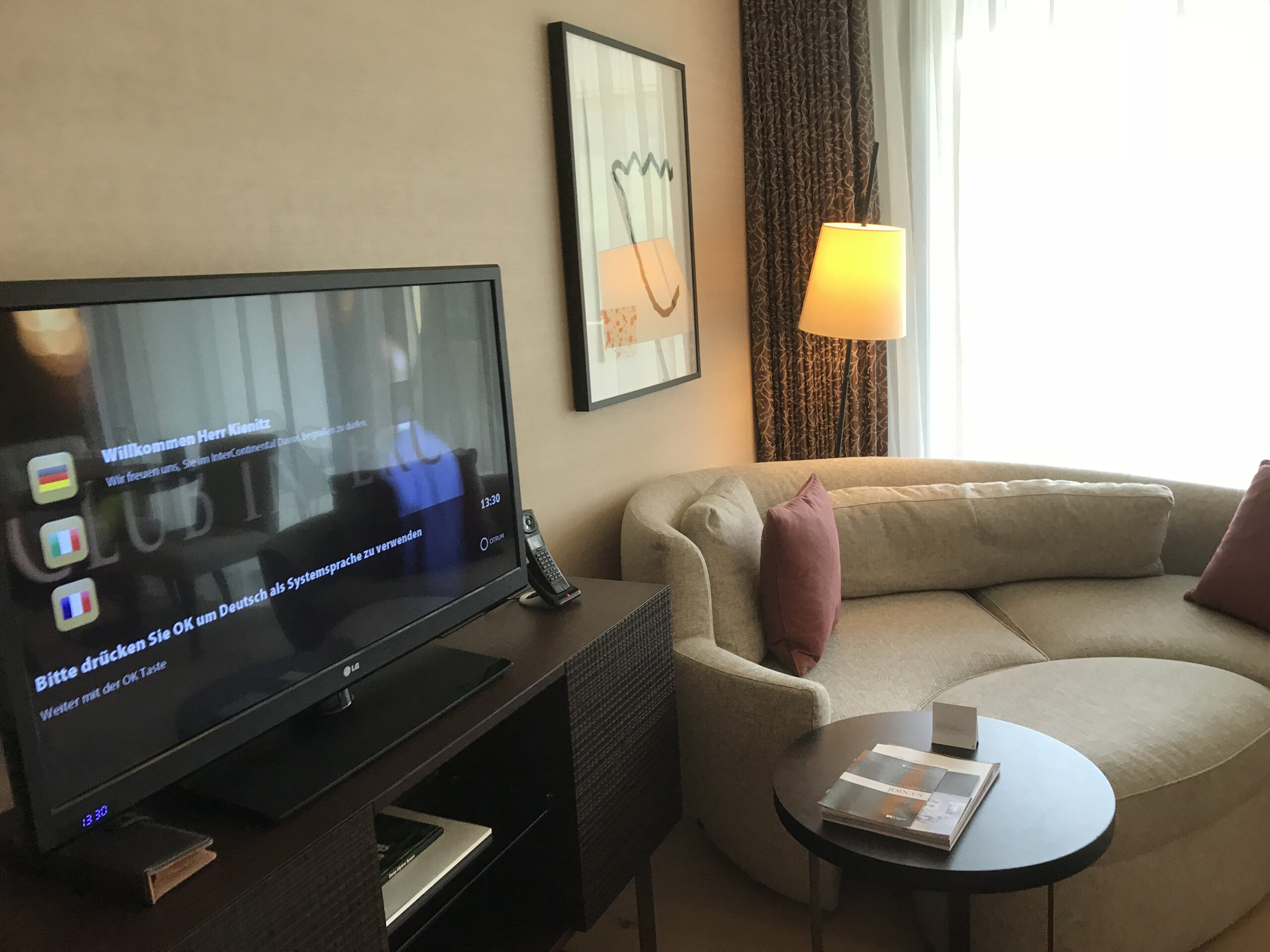 Vom Bahnhof Davos Dorf kann man entweder laufen, den Bus nehmen oder sich nach einem Anruf beim Hotel auch abholen lassen (gratis). Der eigentliche Check In erfolgte recht schnell, zudem konnte man noch sein Glück versuchen für ein weiteres Benefit. In meinem Fall war es ein gratis Titel im Pay TV. 🙁