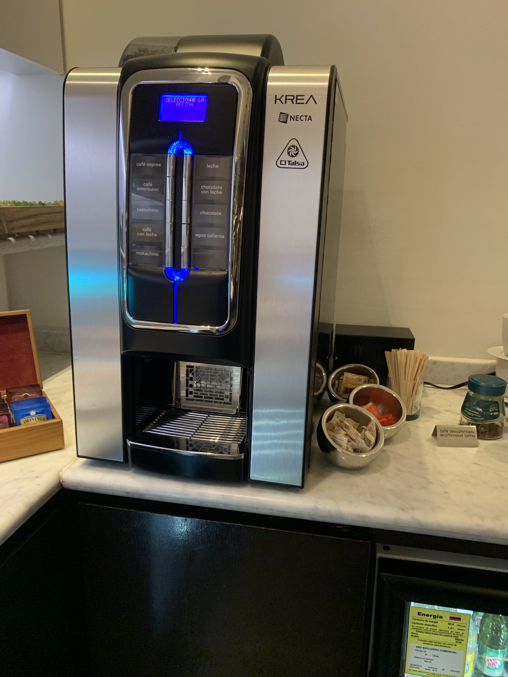 Kleine, aber funktionale Lounge in Bogota — netter Service, überschaubares Angebot, gut genug für den Zwischenstopp.