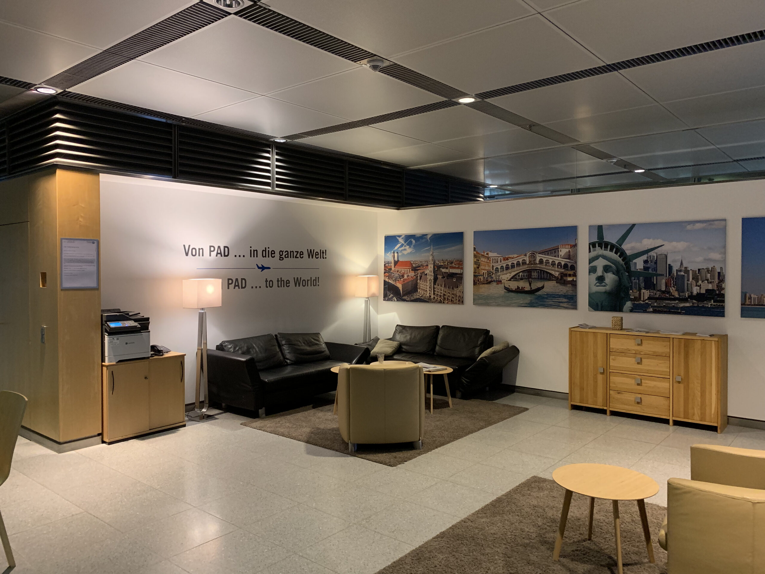 Ja auf dem kleinen Regionalflughafen Paderborn/Lippstadt gibt es tatsächlich eine (kleine) Lounge.