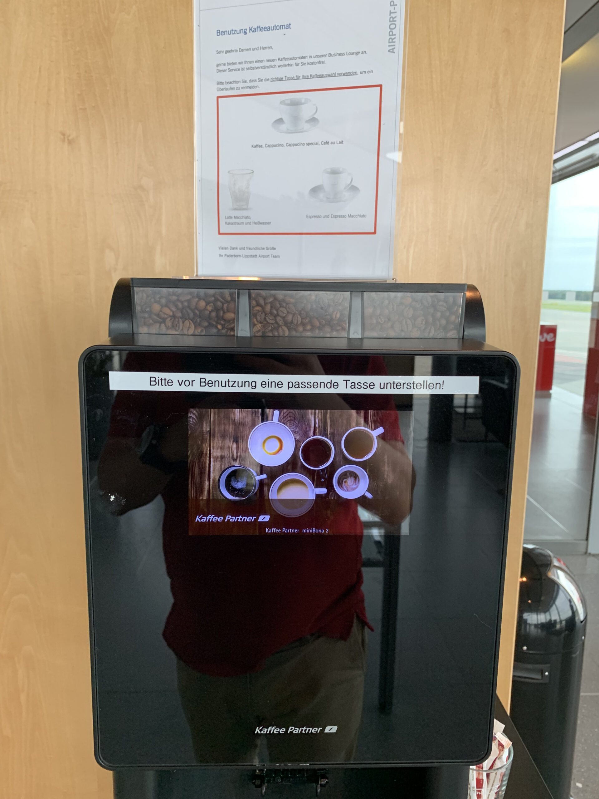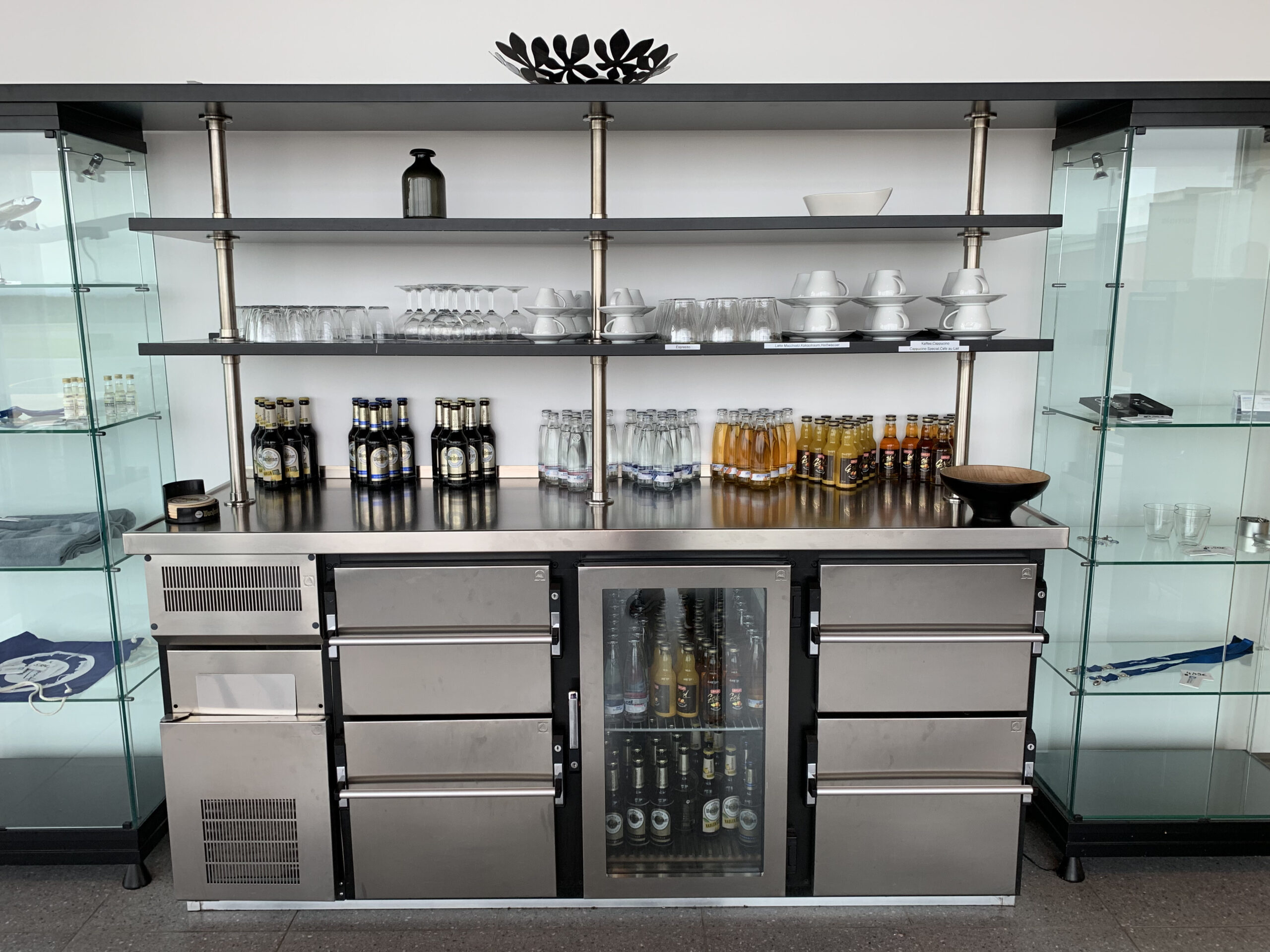 Bitte erwartet nicht zu viel, diese Lounge wird vom Flughafen betrieben und es gibt neben den Sitzmöglichkeiten mit Stromanschlüssen als Getränke Bier, Wasser, Orangensaft und Apfelsaft. Dazu noch eine Kaffeemaschine die alles Mögliche zubereitet. Über die Qualität kann man dann doch ein wenig streiten, aber es ist eine nette Geste.