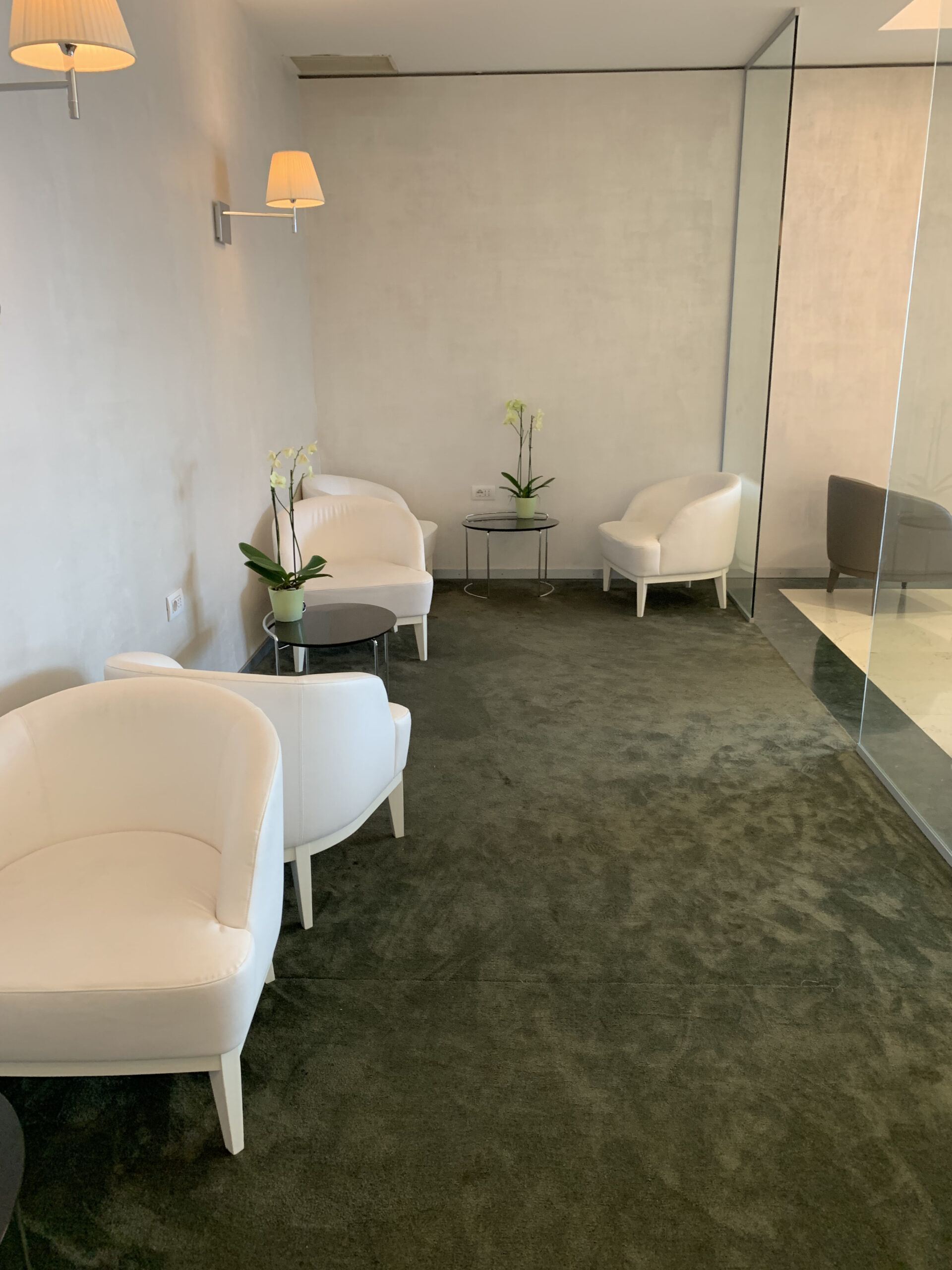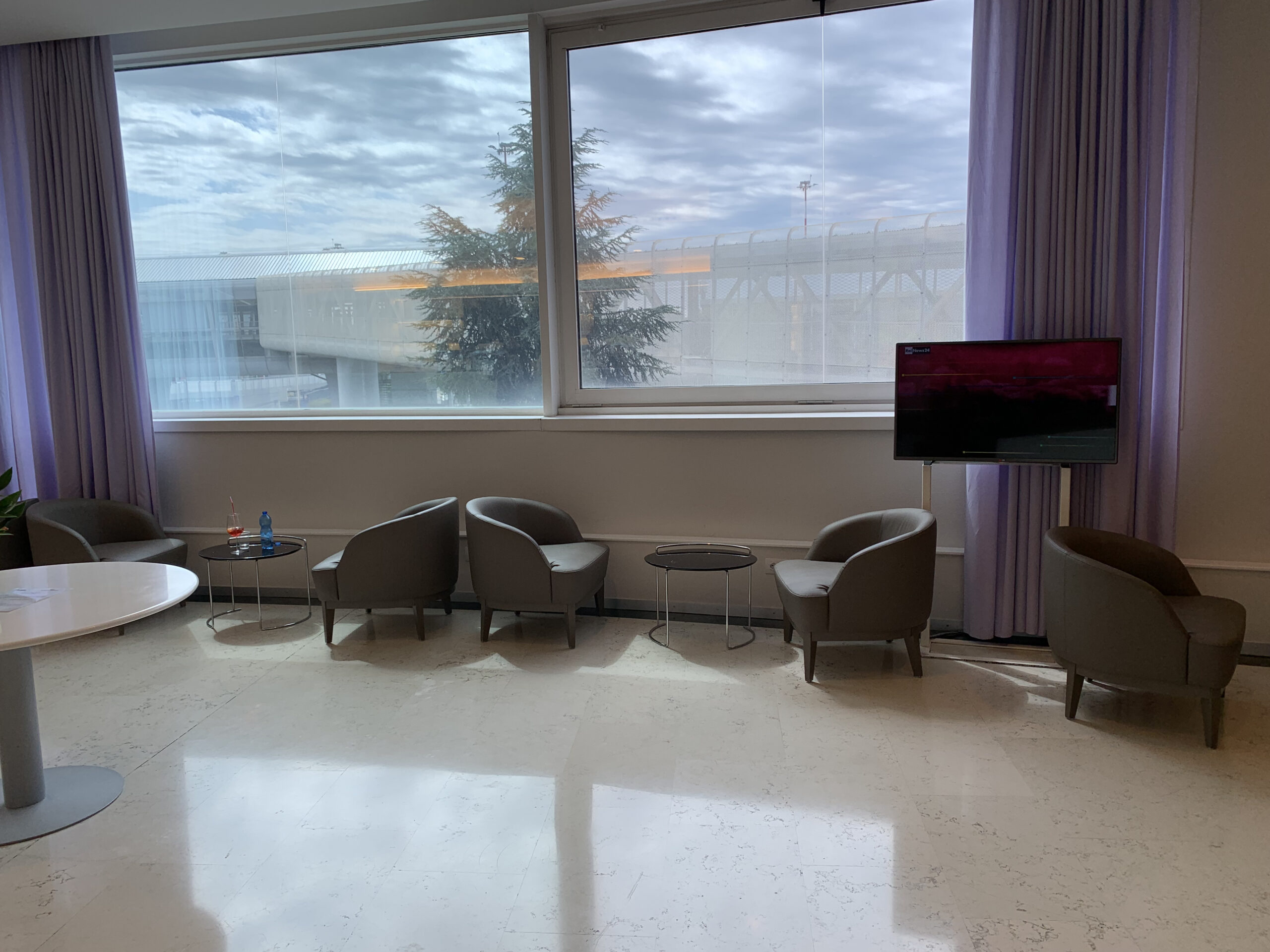 Die Lounge besticht nicht unbedingt durch tolles Design, vielmehr ist es nur ein grosser Raum mit unterschiedlichen Sitzgelegenheiten und einer bedienten Bar. Da die Lounge Landseitig gelegen ist, ist die Aussicht lediglich in Richtung Parkhaus.