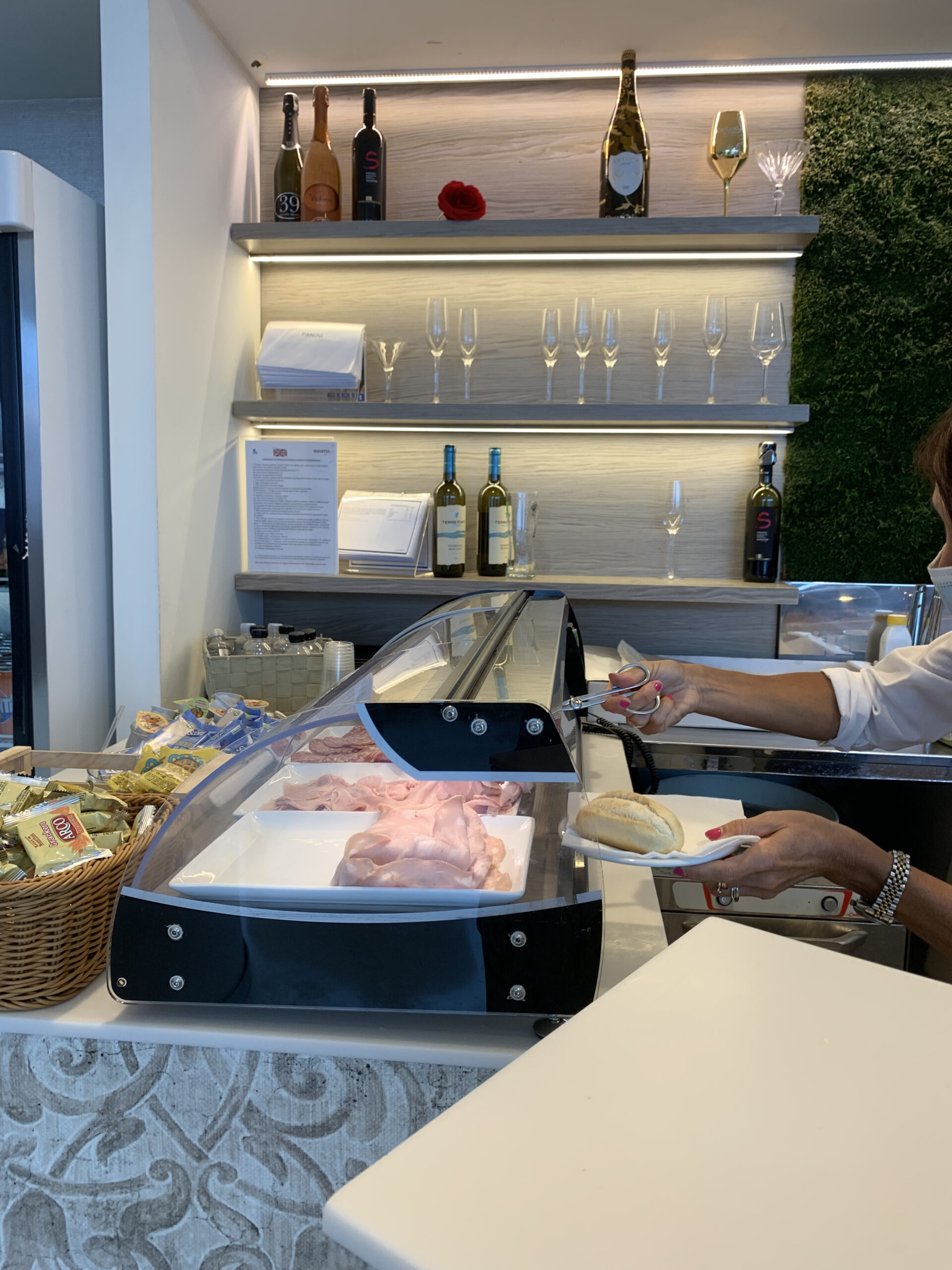 Die Bar hat echt guten Kaffee im Angebot, aber es werden euch auch kleine Sandwiches oder andere alkoholische Getränke (Prosecco, Wein, Aperol Spritz etc ) gegeben. Leider hat es keine warmen Speisen, dies wäre echt toll gewesen.