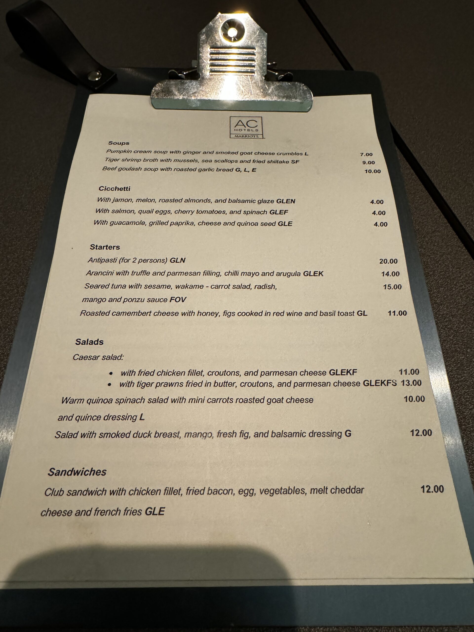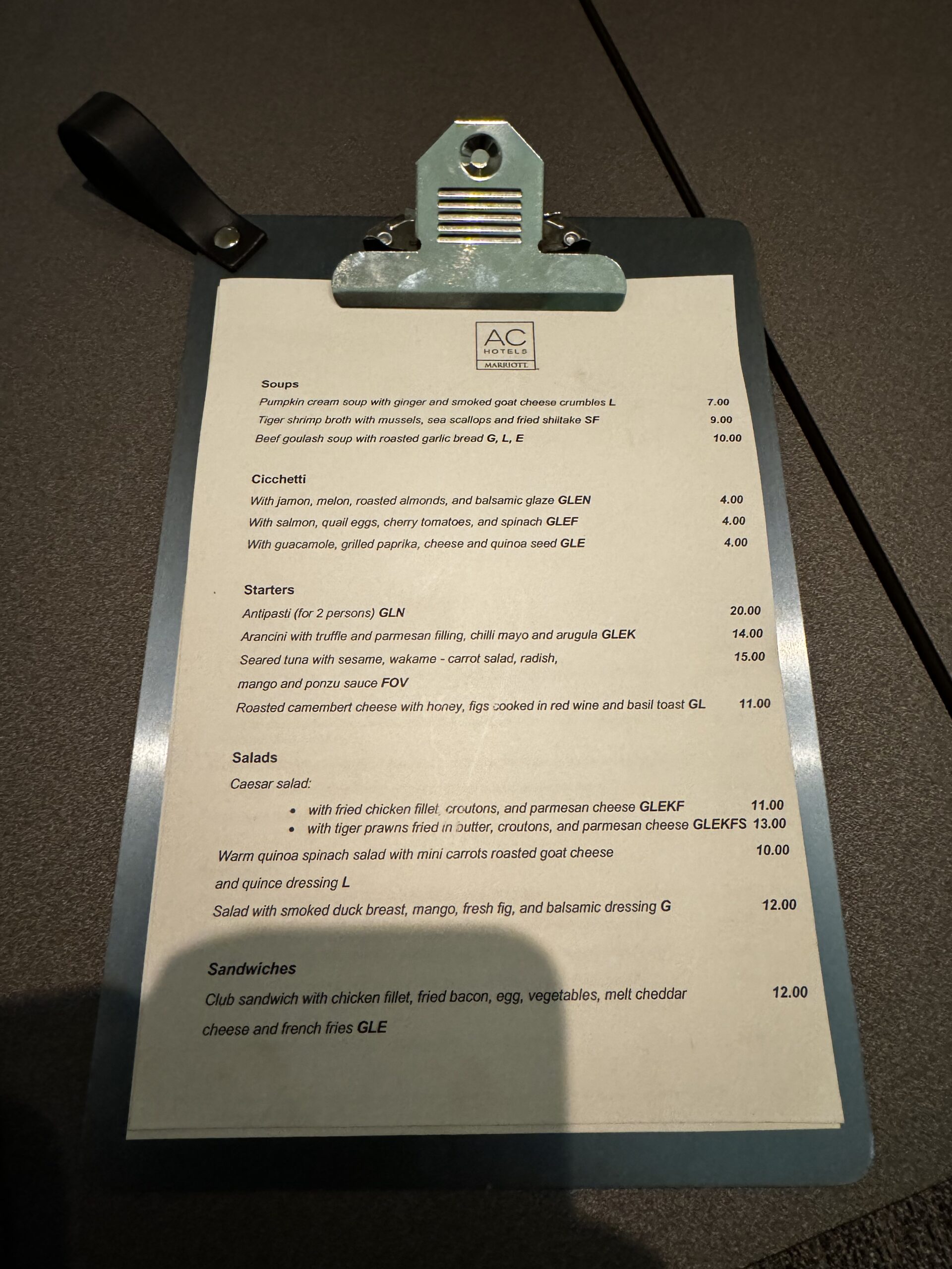 Da das Frühstück bei den AC Hotels auch nicht für Elite Member dabei ist, habe ich mich für den täglichen 10 Euro Gutschein entschieden.