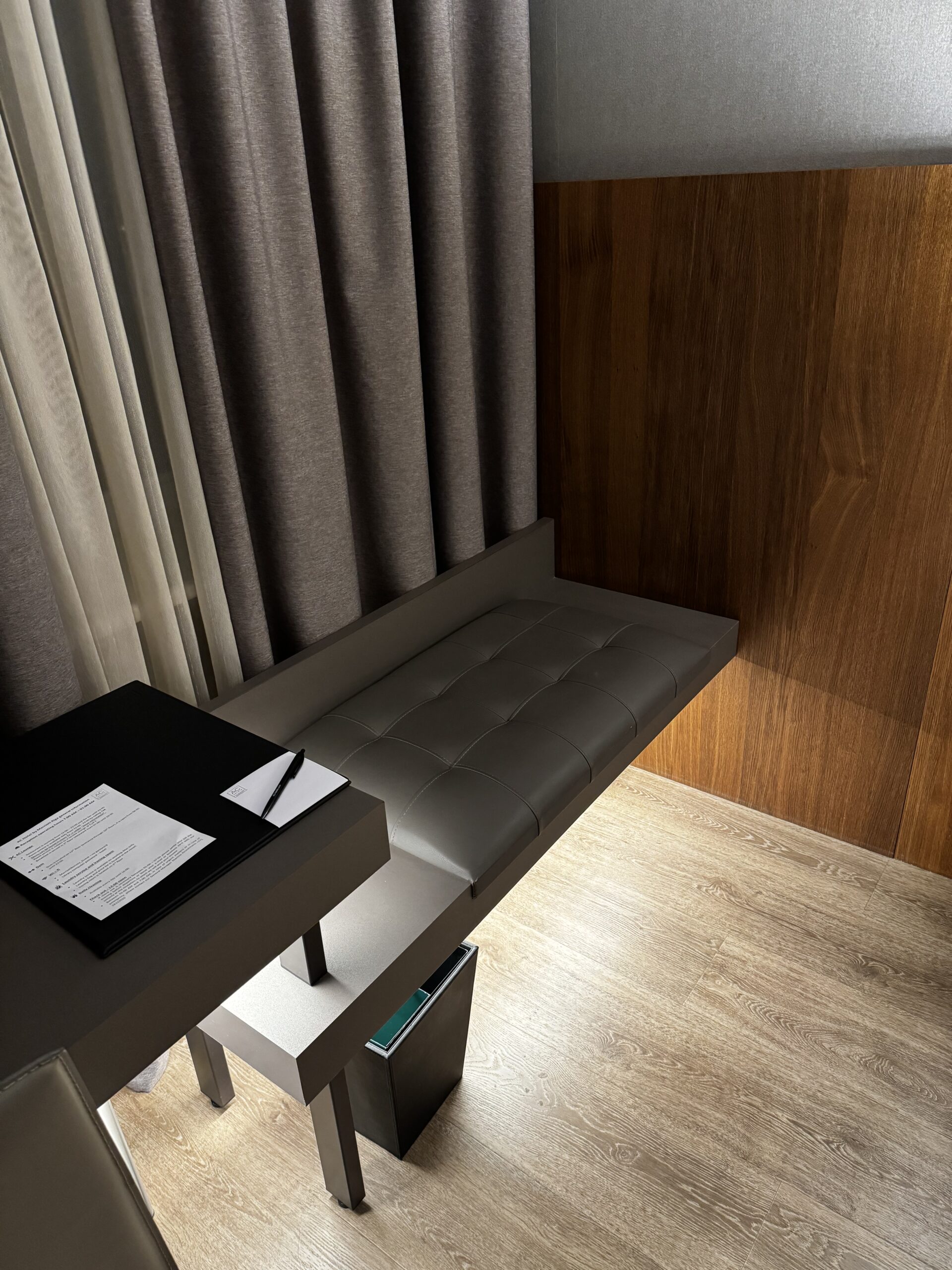 Am Fenster hat es noch eine Kaffeemaschine, gratis Wasser sowie eine kostenpflichtige Minibar. Eine Stück Schokolade und eine Karte vom Hotel hat es dort ebenfalls gegeben. Dazu hat man hier noch eine Ablagefläche für das Gepäck.