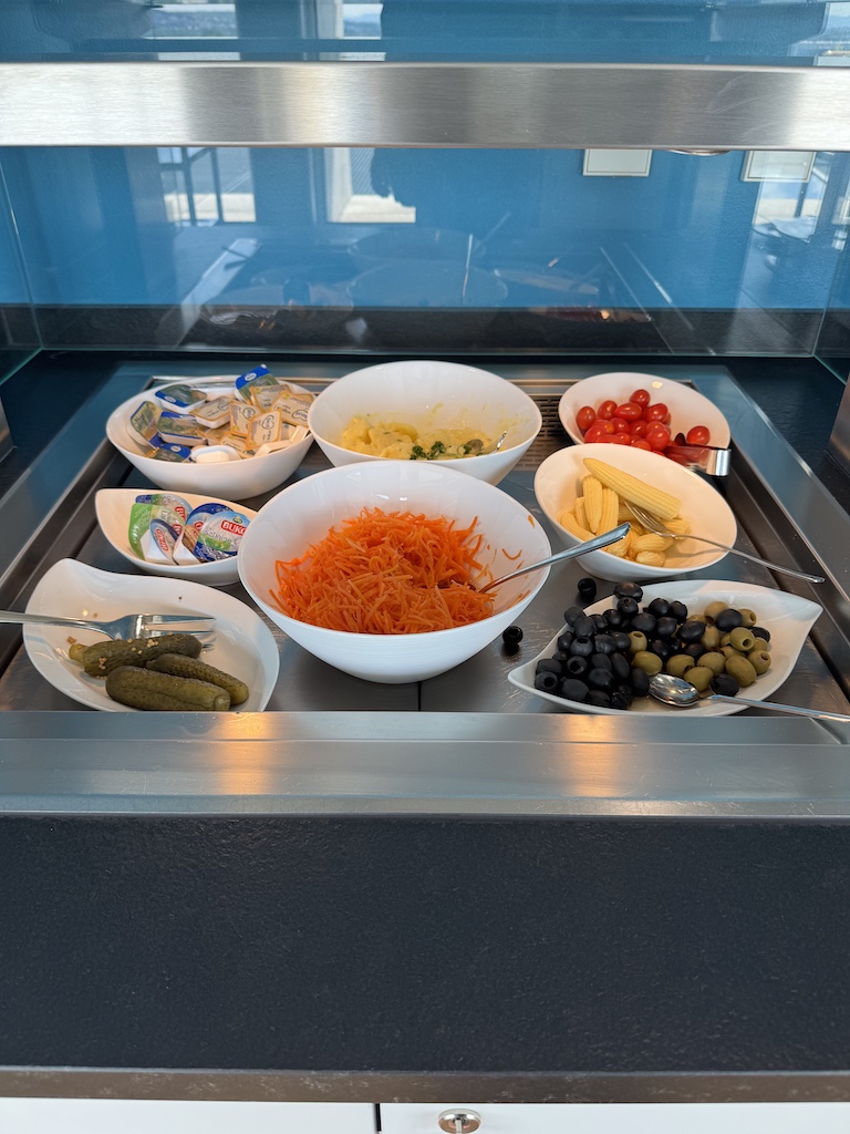 Während meines Besuchs erlebte ich gerade den Wechsel von Frühstück zu Mittagessen. Die Qualität war solide, das Angebot ausreichend, um nicht hungrig ins Flugzeug zu steigen. Eine Gourmet-Auswahl darf man hier natürlich nicht erwarten, aber als Stärkung für zwischendurch passt es.