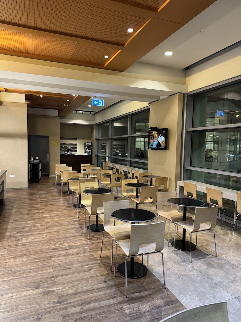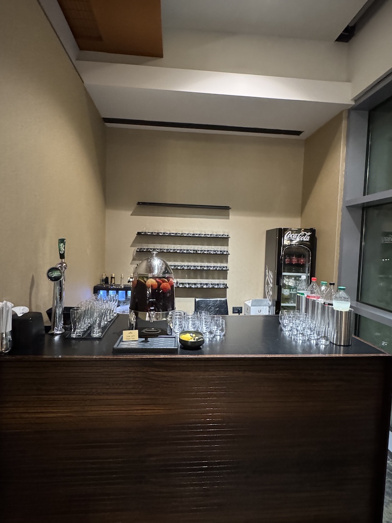 Kleine Lounge, wenig Auswahl — wer hier strandet, macht das Beste draus, erwartet aber nicht zu viel.