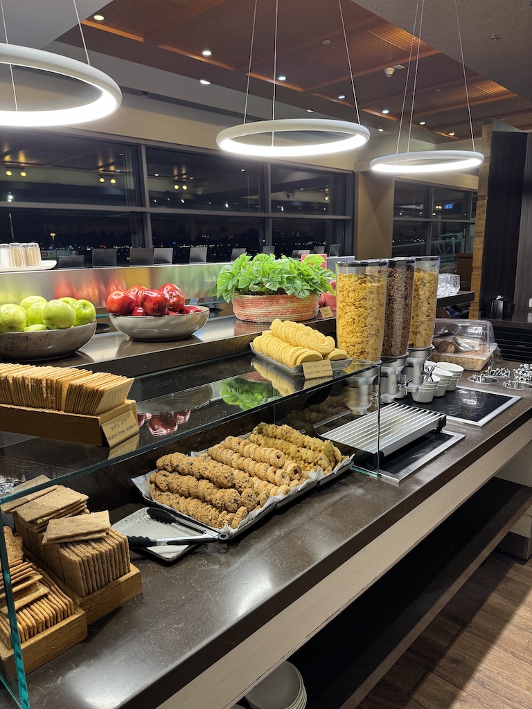Die Loungelandschaft im Flughafen von Tel Aviv ist nicht unbedingt gross. Daher hat es uns in die einzig mögliche Lounge verschlagen. Den Zutritt erhielten wir mit unserem Lufthansa Business Class Ticket. Ausserdem hat man ebenfalls über den PriorityPass und ähnlichen Pässen einen Zutritt. Dabei muss man allerdings beachten, dass man lediglich zwei Stunden vor Abflug in die Lounge darf.