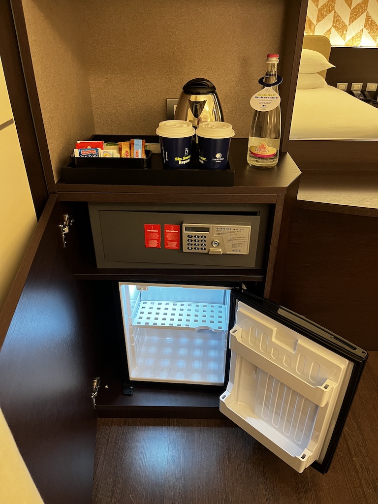 Etwas ärgerlich denn hier scheinen mir einige Bilder zu fehlen, ich begebe mich da noch auf die Suche. Aber: das Zimmer war sehr sauber und das hat mir schon gefallen. Die Grösse war absolut ausreichend und auch auf genügend Steckdosen hat man geachtet. Dazu kam noch eine Flasche Wasser und ich war mehr als zufrieden für den kurzen Aufenthalt.