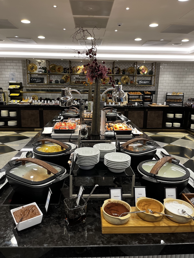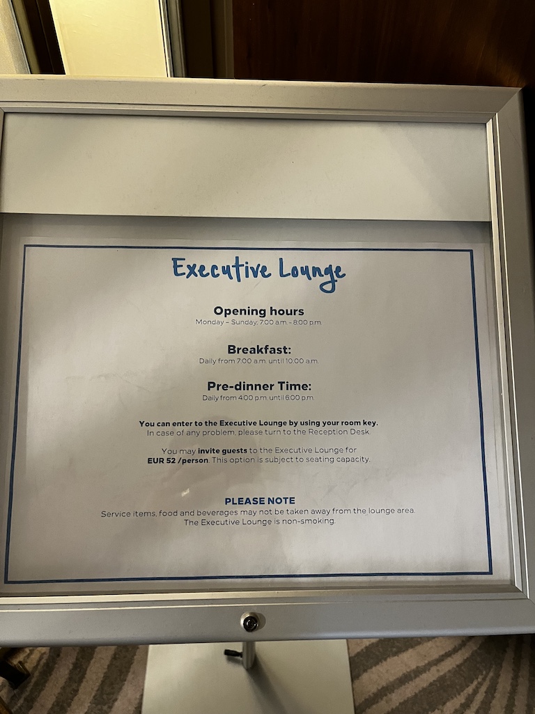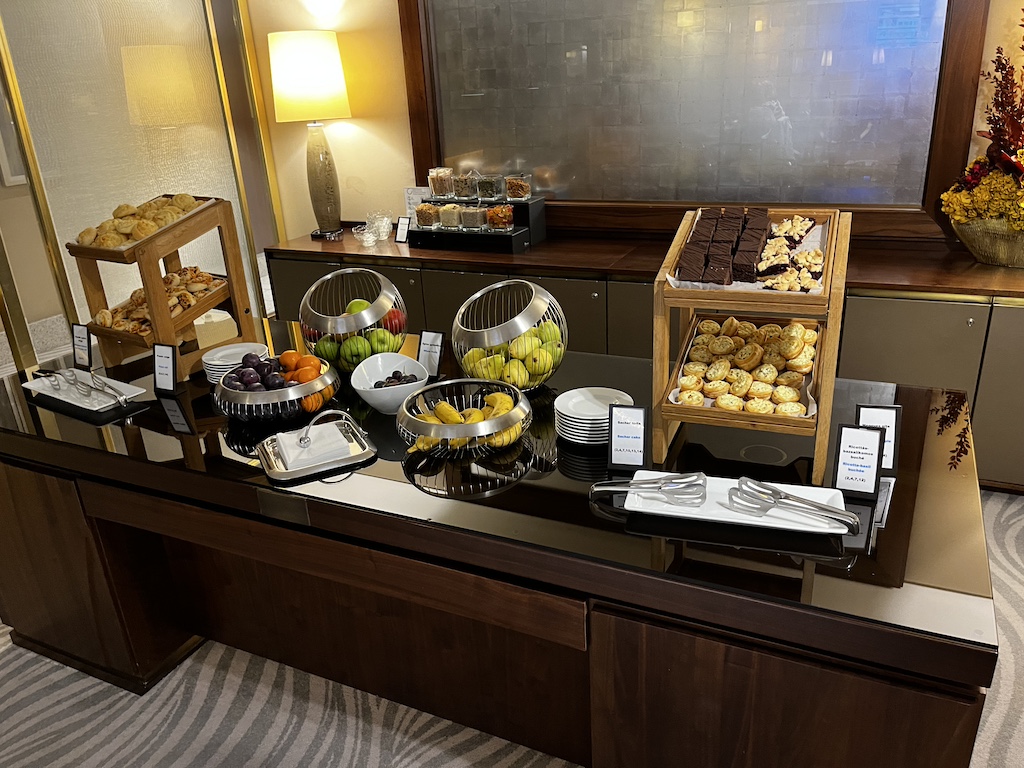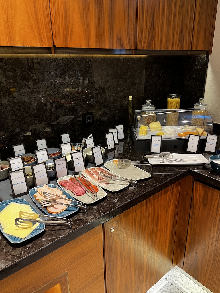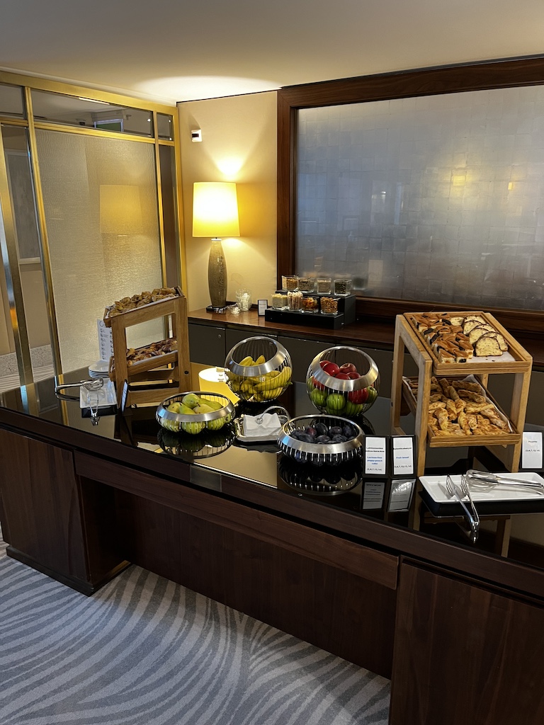 Am Morgen kann man hier wie auch im Erdgeschoss sein Frühstück einnehmen. Wenig verwunderlich ist, dass die Auswahl an Speisen in der Executive Lounge nicht so umfangreich ist wie im Restaurant. Dennoch war ich auch hier sehr positiv überrascht von der Auswahl.
