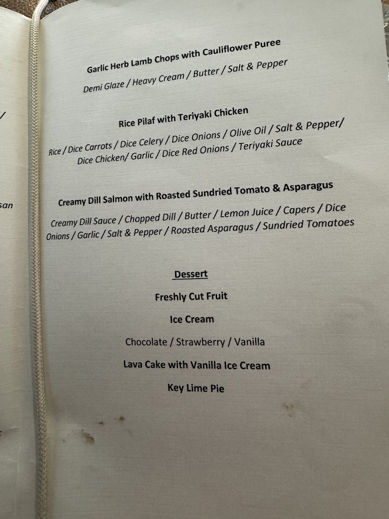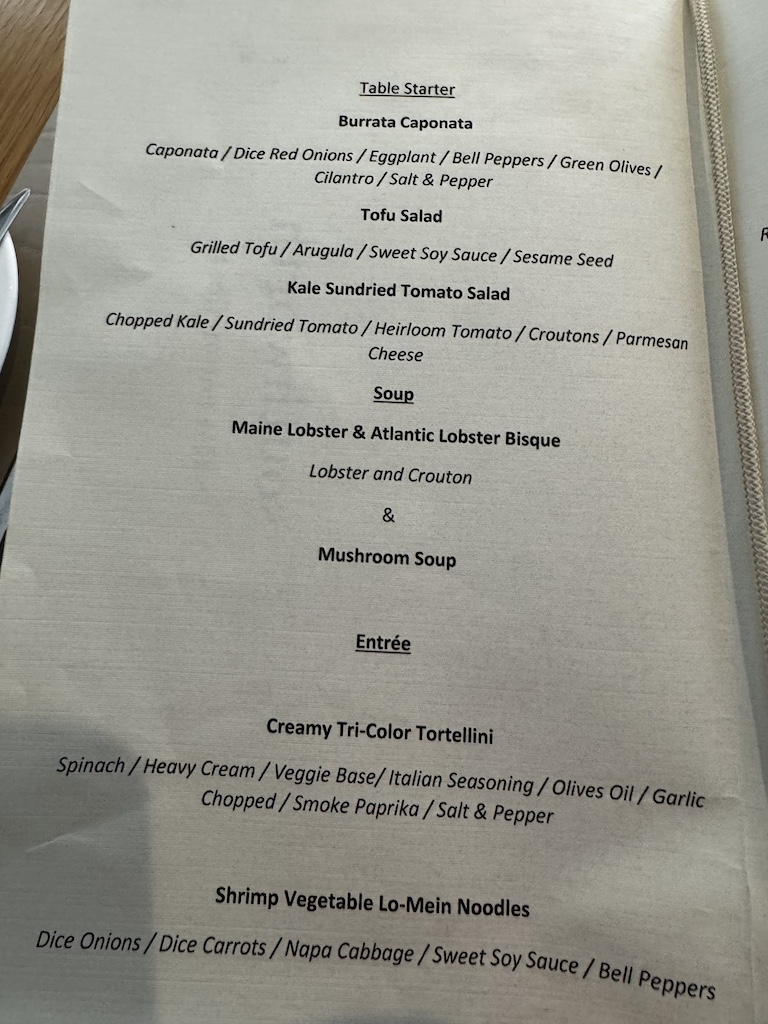 Die Speisekarte sieht im Moment so aus: