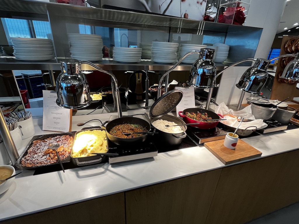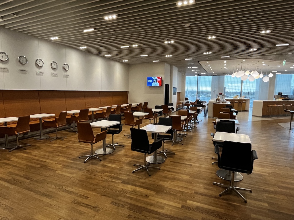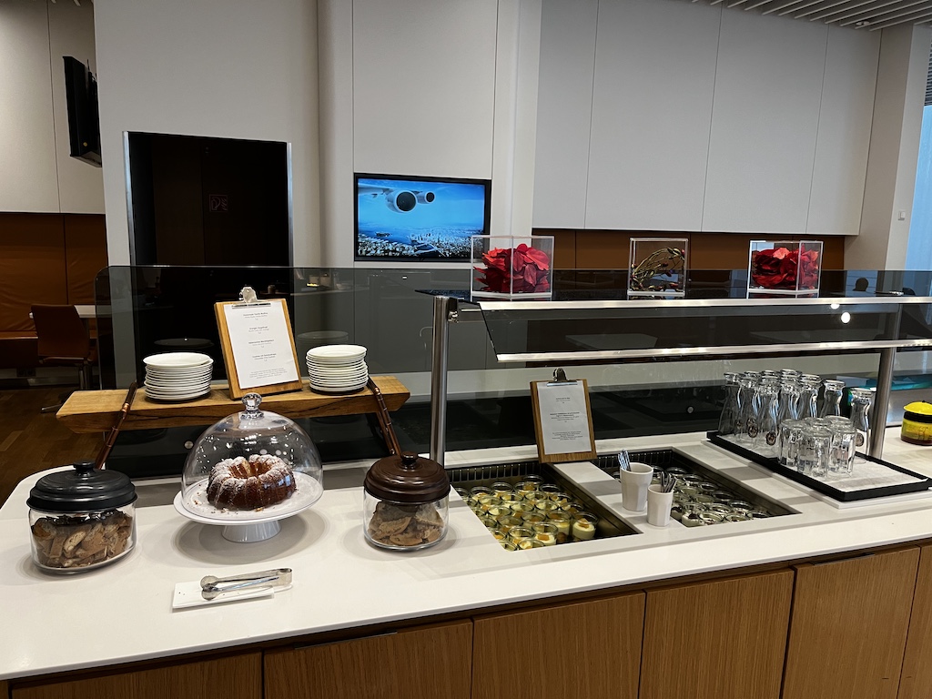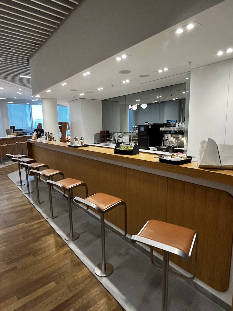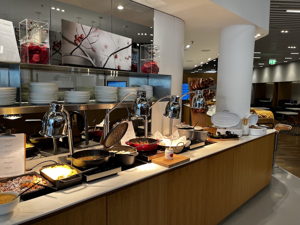 Ich mag diese Senator Lounge sehr. Ein Grund ist sicherlich dass man Tageslicht hat, aber auch die Auswahl an verschiedenen Sitzmöglichkeiten (egal ob man arbeiten, essen oder relaxen will) wie auch das Speiseangebot sind sehr gut. Abgerundet wird es noch mit der Möglichkeit sich zu duschen und dass einem an dem Serviceschalter in der Lounge weitergeholfen werden kann.