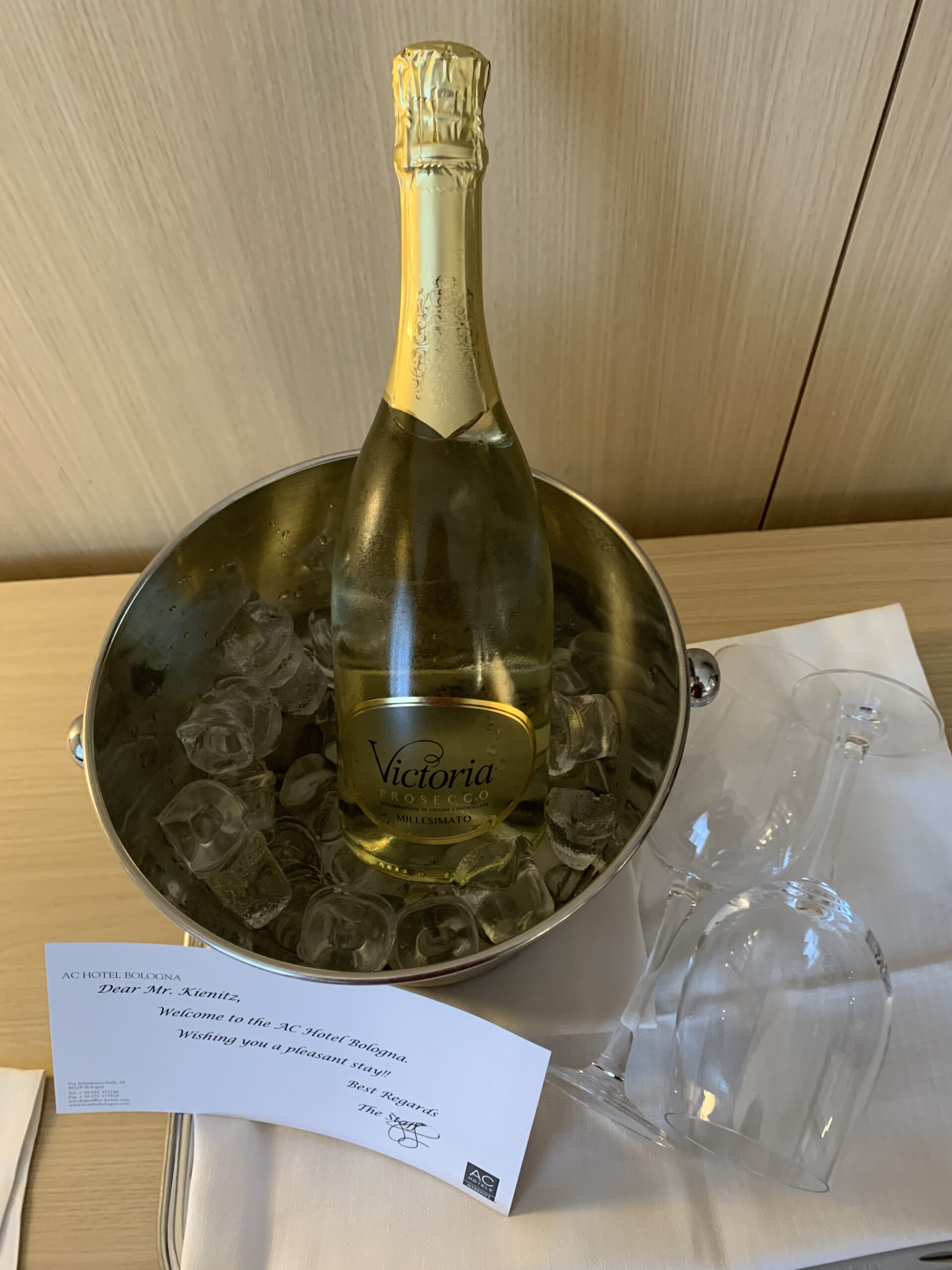Eine tolle Überraschung war noch das Willkommens Amenity welches kurz nach meiner Ankunft im Zimmer ankam. Es war eine Falsche Prosecco sowie eine Karte. Diese Geste finde ich auf jeden Fall sehr schön.