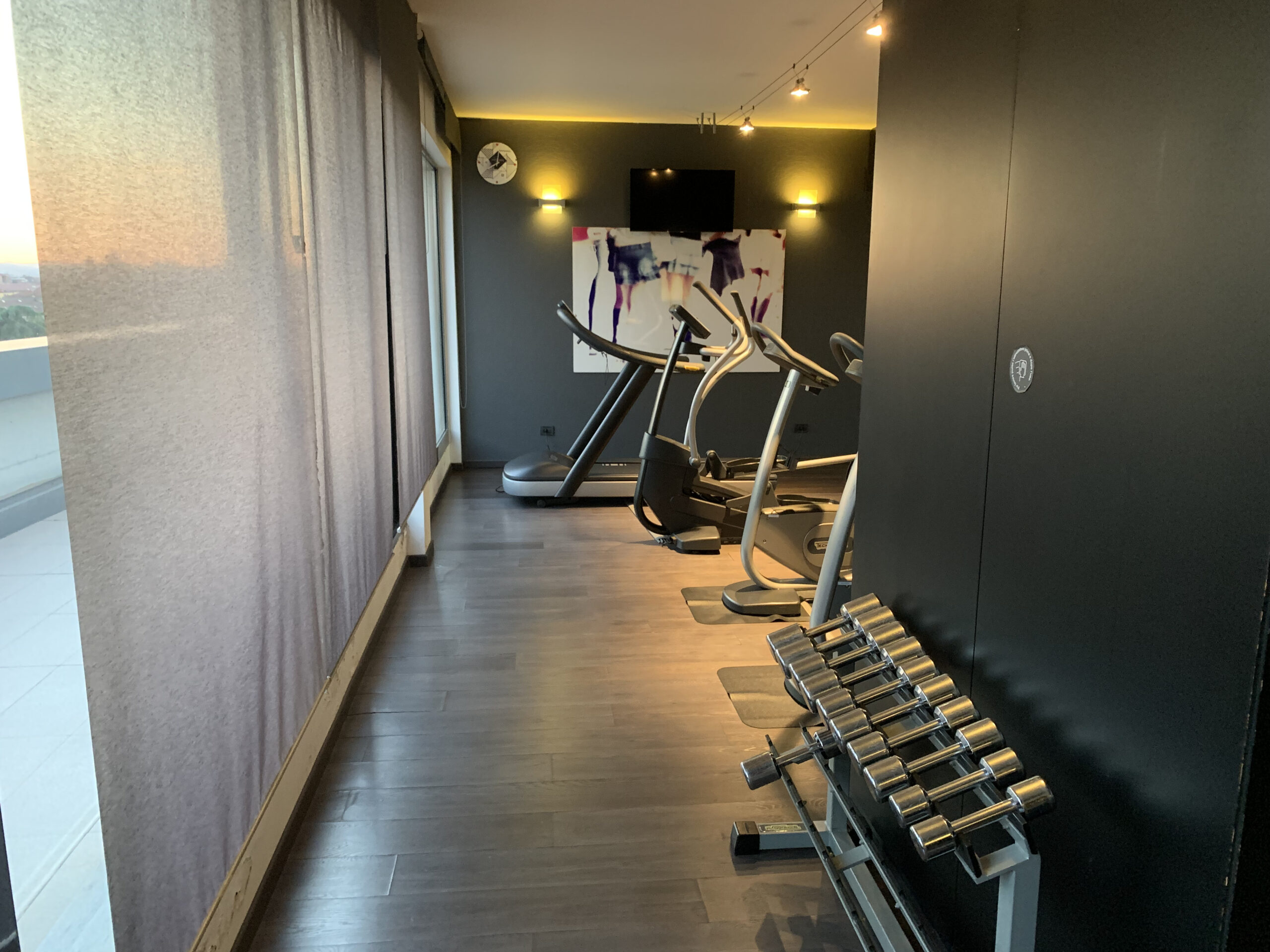 Im 6. Stock hat es noch einen Fitnssraum. Es ist nicht unbedingt sehr gross und grosszügig eingerichtet, allerdings ist der Blick von da oben schon sehr nett finde ich.