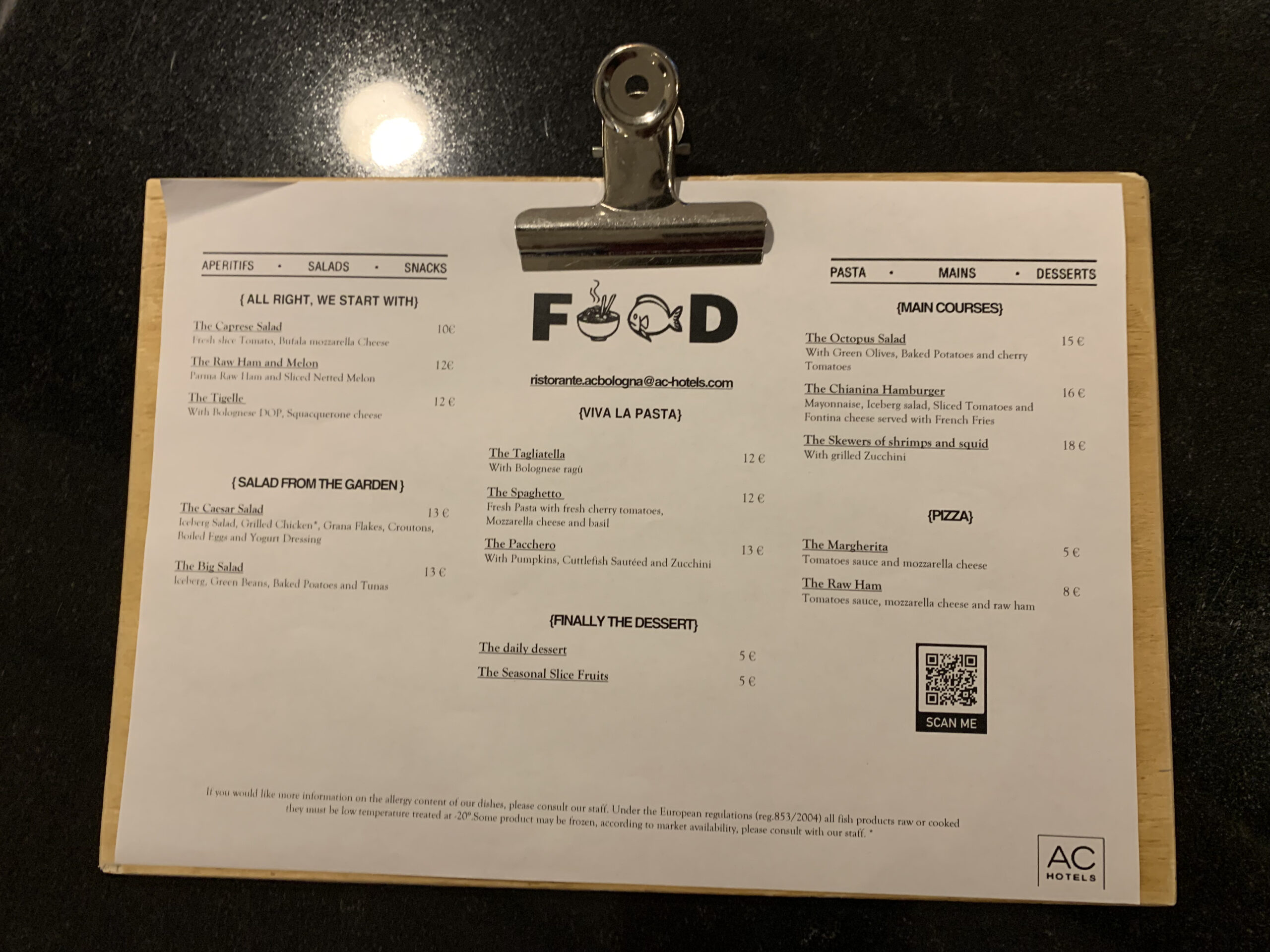 Im Erdgeschoss hat es noch das Restaurant in dem auch das Frühstück angeboten wird. Als ich dort zweimal war hatte es nur wenige Gäste, die Portionen sahen aber durchaus ansprechend aus. Von der Speisekarte habe ich noch ein Bild gemacht. Der Trainee war übrigens wirklich supernett und voller positiver Energie.