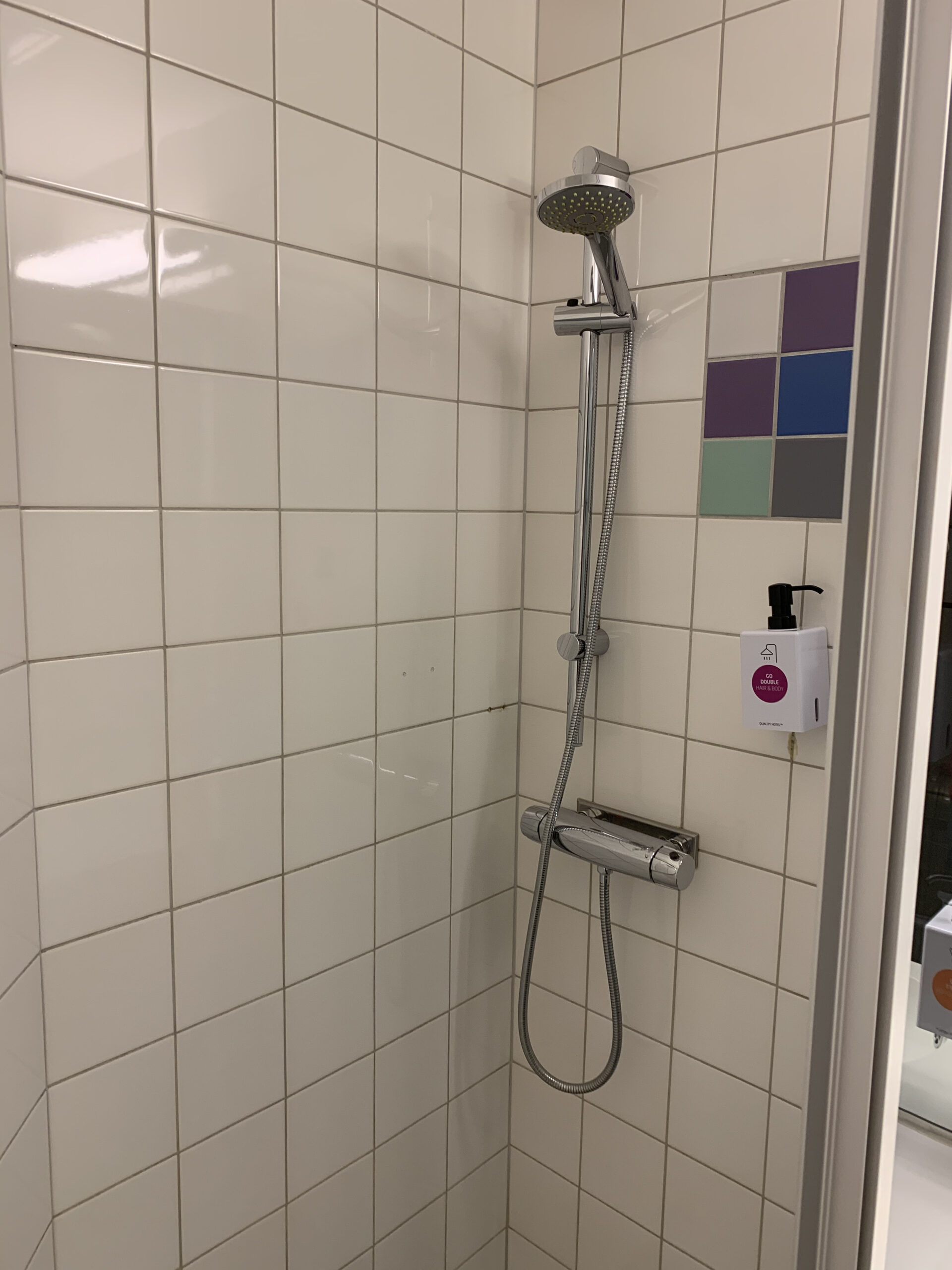 Das Badezimmer ist dann auf der rechten Seite. Es hat eine kleine Dusche, das Waschbecken ist eher klein und alle Pflegeprodukte hat es in den grossen Flaschen (die ich persönlich leider nicht so sehr mag).