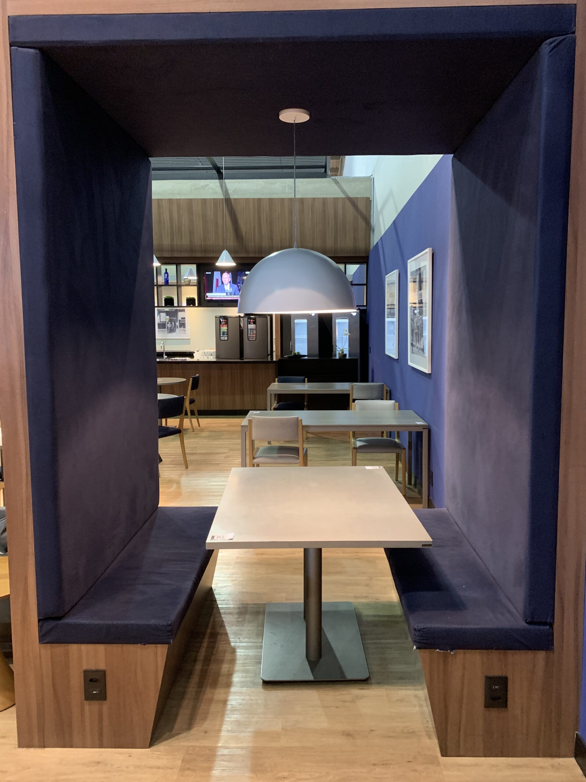 Es hat unterschiedliche Sitzecken die gut in der Lounge verteilt sind. Der grösste Teil davon hat auch ausreichend Steckdosen. Für mich wirkt dies alles sehr modern und ist eine angenehme Abwechslung zu den anderen Lounges.