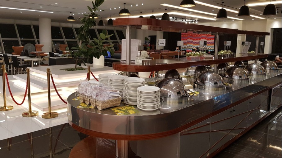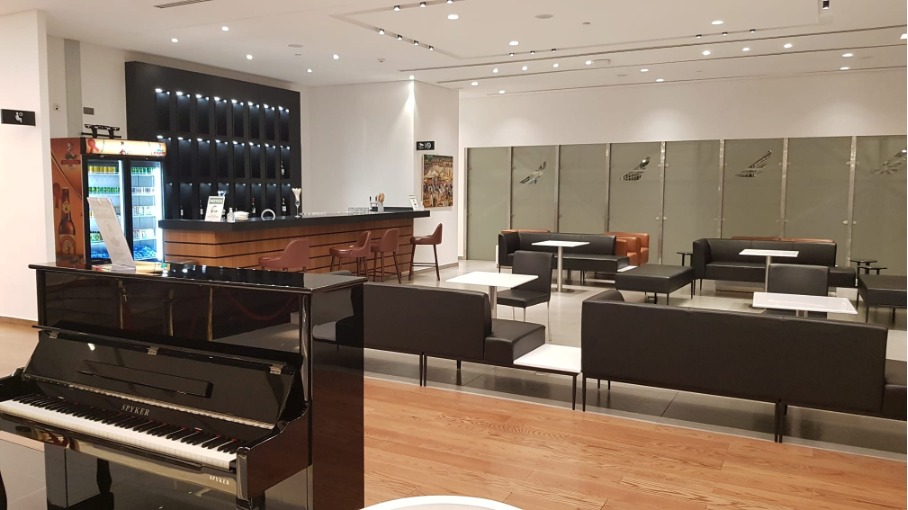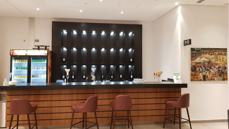 Der Eintritt erfolgt durch einen grosszügig und hell gestalteten Servicedesk. Auf der linken Seite ist eine Kaffeeecke eingerichtet, in der die Kaffeekultur von Äthiopien vermittelt wird. Die Lounge ist sehr grosszügig um die zu den Morgen- und Abendwelle erwarteten Passagiere aufzunehmen. Die Lounge bietet, Gebetsräume, Duschen, Schlafräume sowie Essens und Loungebereiche.