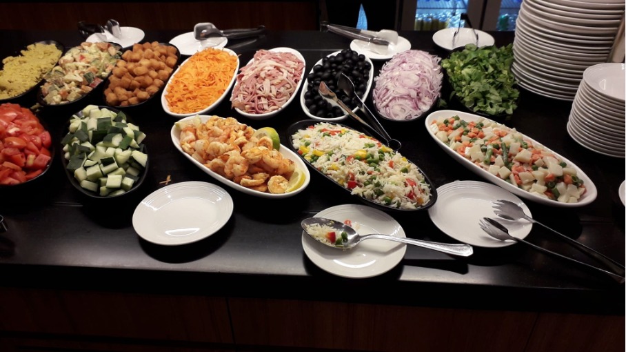Leider sind die Duschen nicht regelmässig in Betrieb, da ich eine längere Wartezeit hatte und gerade einen Mitarbeiter angetroffen habe, hatte ich Glück und konnte die Dusche nutzen. Die Duschen, wie auch die Toiletten sind sehr sauber und werden wohl regelmässig gereinigt, aber ein Baufachmann würde ob den Improvisationen wohl die Nase rümpfen.Die Speisen sind räumlich getrennt, in einem Raum sind die kühlen Speisen wie Salate und Früchte, während die warmen Speisen zusammen präsentiert werden. Das Essen hat lokale wie internationale Komponenten und ist lecker.