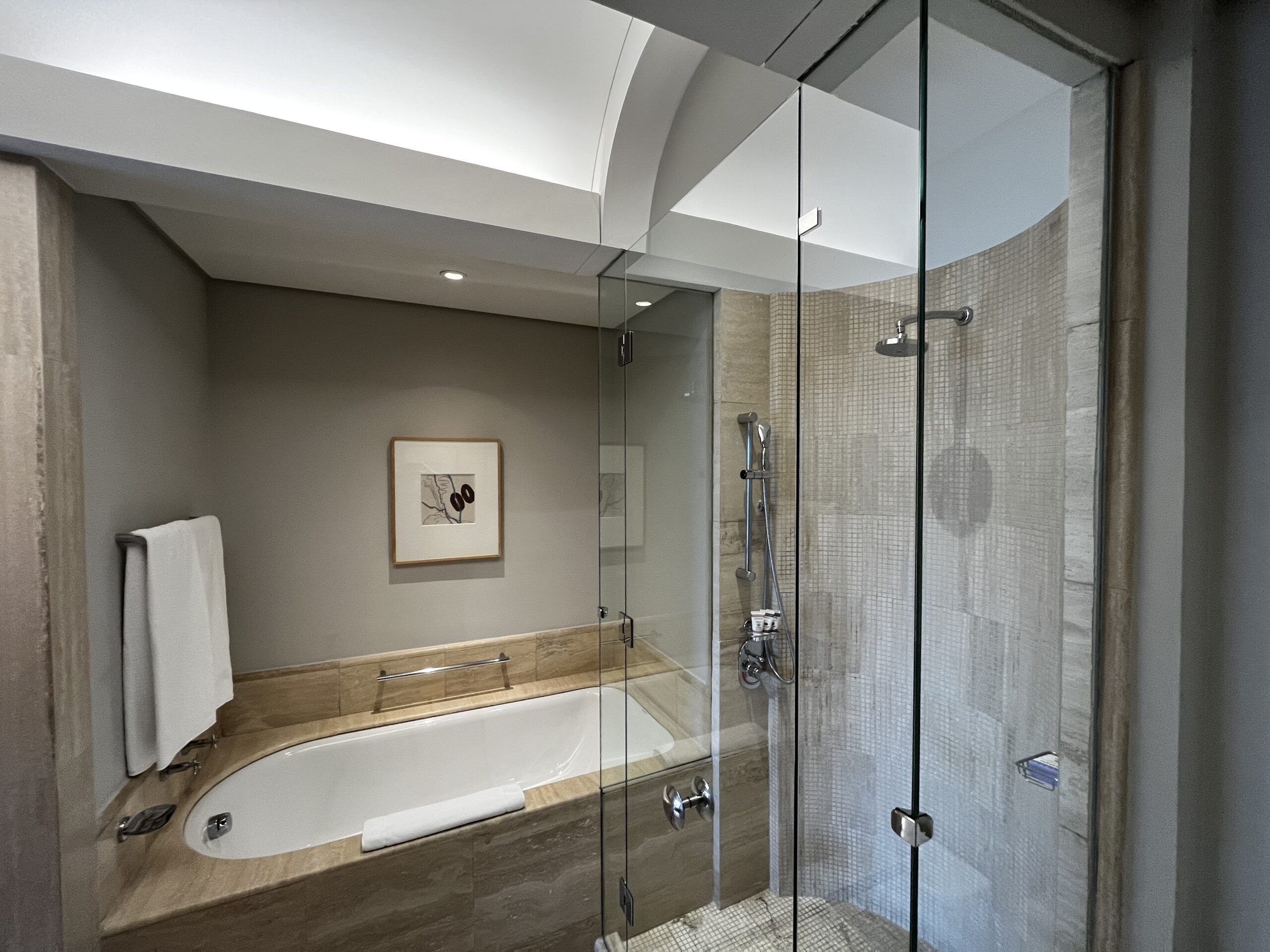 Hier war ich sehr positiv überrascht. Das Hilton bestand auf die Covid Regel das man keine Minibar oder so auffüllen durfte. Wenige Meter weiter war dies kein Problem und so überhaupt nicht bekannt. Der Service war sehr nett und zuvorkommend. Das Zimmer für die gebuchte Kategorie wirkhoch gut und durchdacht eingerichtet.