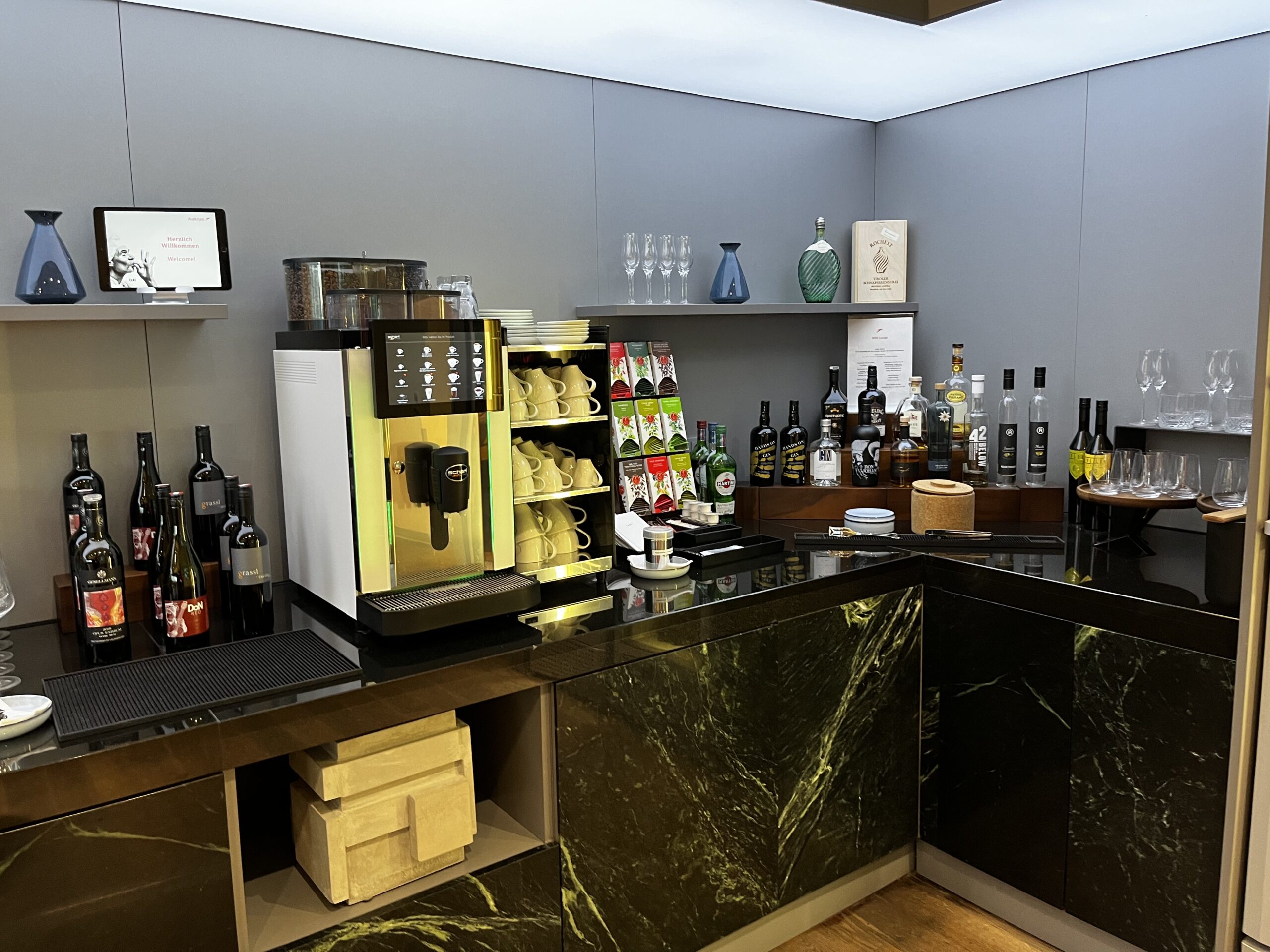 Grundsätzlich hat jeder HON der mit Austrian, Lufthansa oder Swiss von Wien abfliegt hier Zugritt. Auch wenn man später mit einem First Class Ticket über Zürich, München oder Frankfurt weiterfliegt so darf man vorher in diese Lounge.