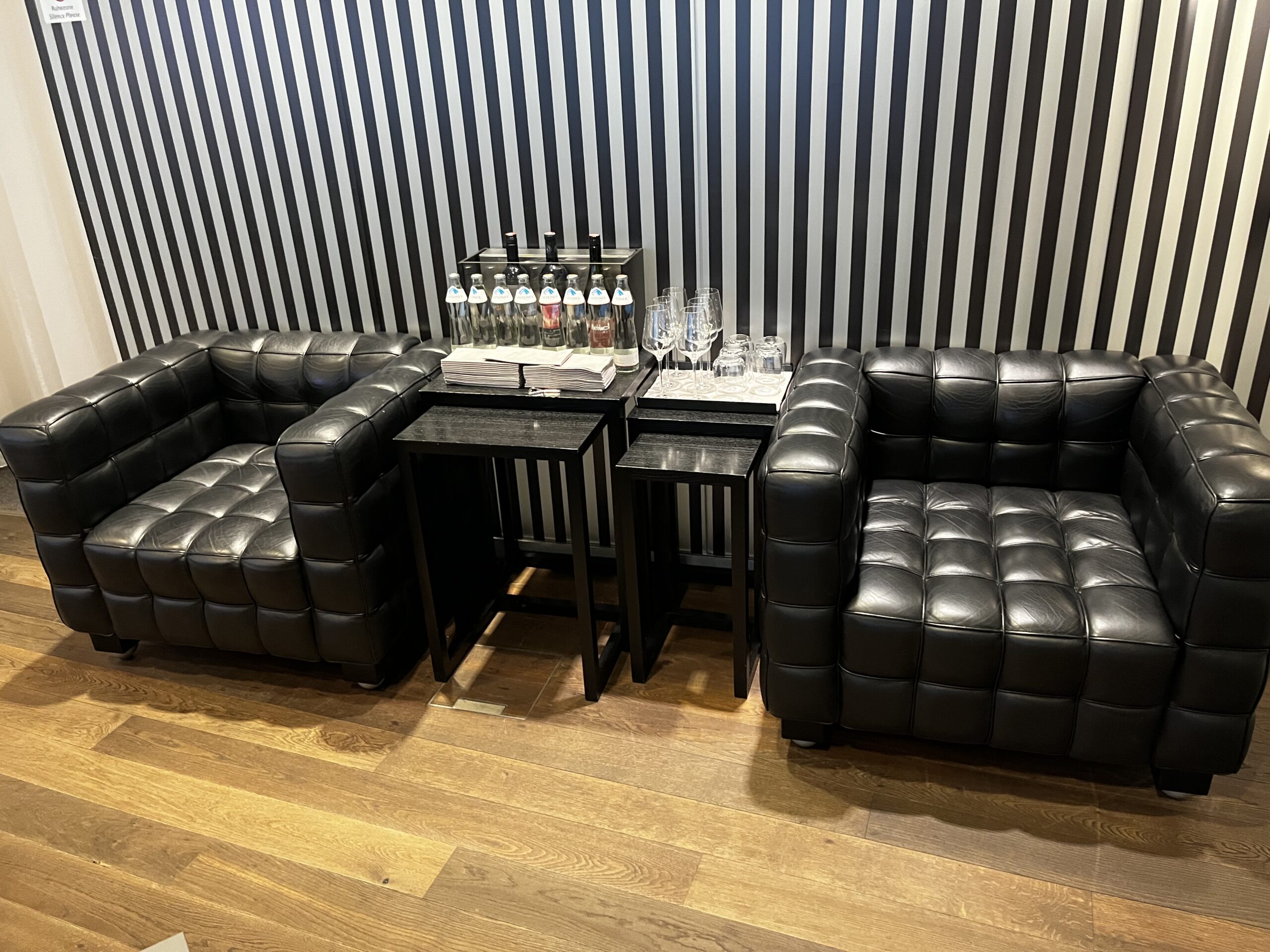 Kleine, exklusive Lounge mit separatem Security-Eingang — perfekt für HONs, die in Wien stressfrei starten wollen.