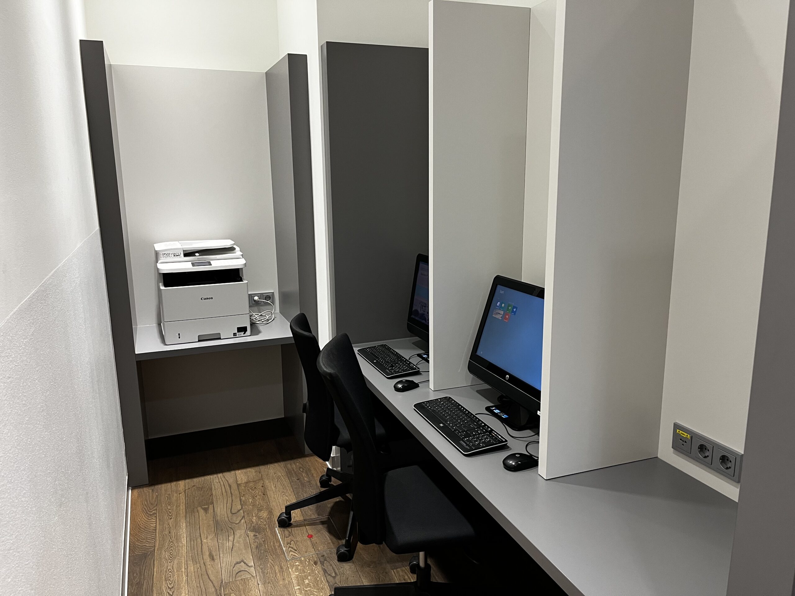 Es hat auch einen (zugegeben) sehr kleinen Arbeitsbereich mit zwei PC und einer Möglichkeit Dokumente zu kopieren. Der eigentliche Drucker steht allerdings vor der Lounge.
