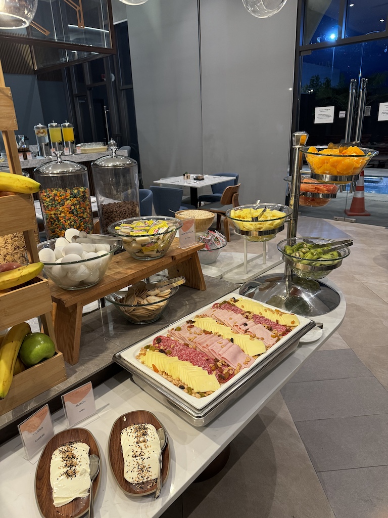 Morgens konnte ich noch das Frühstück nutzen welches inklusive war. Dies war mir so nicht bewusst, denn beim Check In konnte ich ja (wie oben beschrieben) zwischen 500 Punkten oder 10 USD F&B Gutschrift wählen. Das Frühstück konnte man als Buffett einnehmen und meiner Meinung nach war es wirklich anständig – auch jeden Fall bin ich gut satt (und nach den längeren Flügen) dank des Kaffees auch wach geworden. Hier lasse ich die Bilder einfach mal für sich spreche.