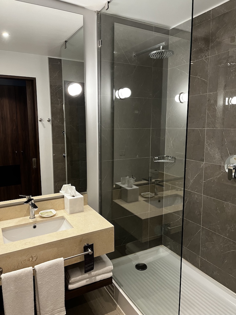 Es ist nicht sonderlich gross und bei der offnen Dusche war ich erst skeptisch. Aber für so kurze Zeit ist es ausreichend und was ich persönlich toll fand war, dass die Duschmittel in kleinen Flaschen zur Verfügung gestellt werden.