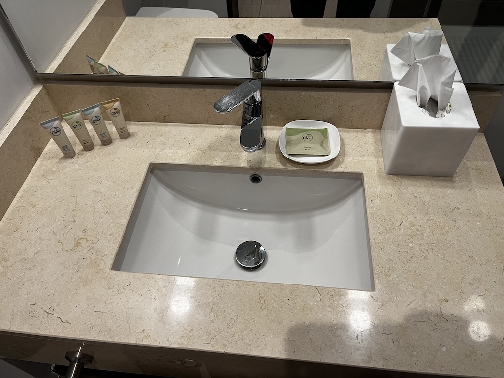 Das Couryard liegt ca. 10 Minuten vom Flughafen entfernt. Auch wenn es auf der offiziellen Homepage keinerlei Hinweis zum Airport Shuttle gibt, so habe ich via Marriott App mal nachgefragt. Und siehe da, das Hotel bietet sehrwohl einen kostenlosen Shuttle an. Dafür wollte man meine Flugnummer und WhatApp Nummer haben – dies habe ich geschickt und mir wurde dann später gesagt dass ich zur Tür 5 laufen sollte. Leider stimmte diese Aussage dann doch auch nicht so richtig, denn richtig ist es mehr zwischen Tür 3-4 beim Starbucks (der wiederum draussen ist). Dies einfach nur als Information solltet ihr den Shuttle auch mal nehmen wollen. Dann hat allerdings alles reibungslos geklappt.