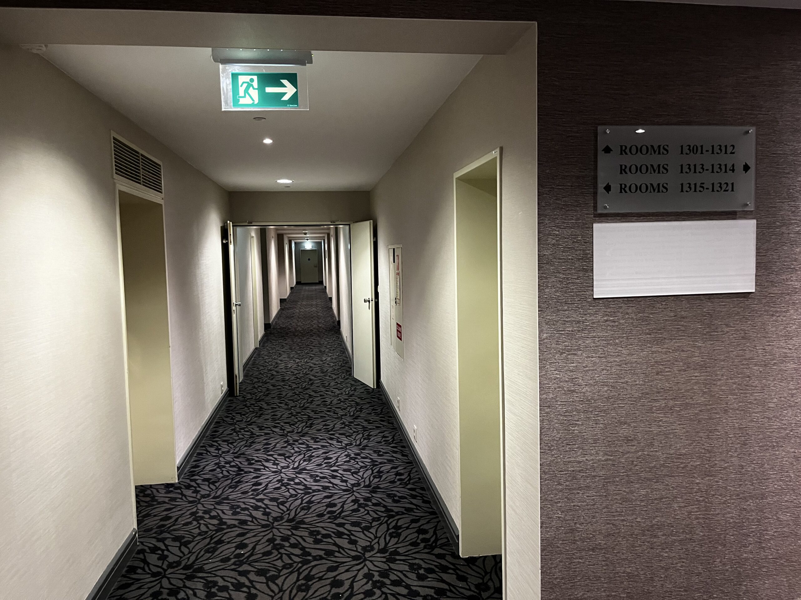 Bereits vor der Ankunft habe ich gesehen, dass ich ein Upgrade erhalten habe. Auf der 13. Etage ging es dann zum Zimmer. Wie momentan üblich sind die Zimmer versiegelt.
