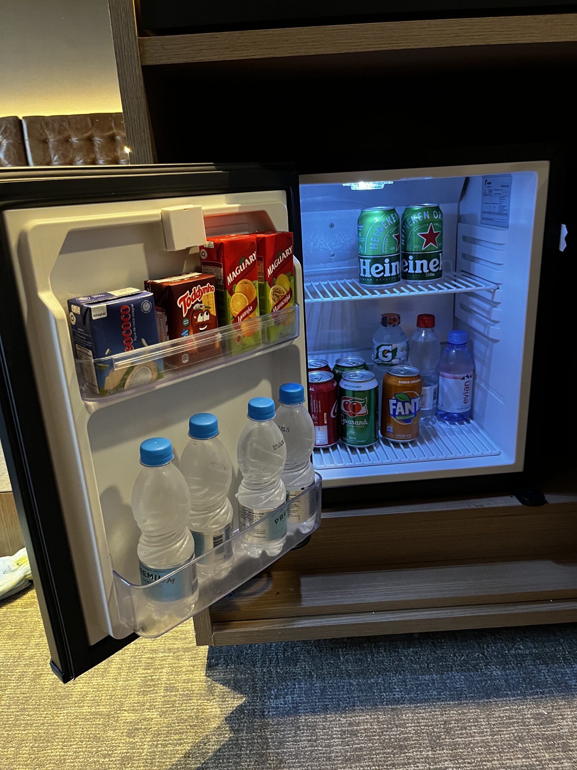 DIe Minibar war ebenfalls sehr gut gefüllt, allerdings waren die Preise nicht unbedingt günstig. Zwei Flaschen mit gratis Wasser gab es ebenfalls was ich immer sehr schön finde.