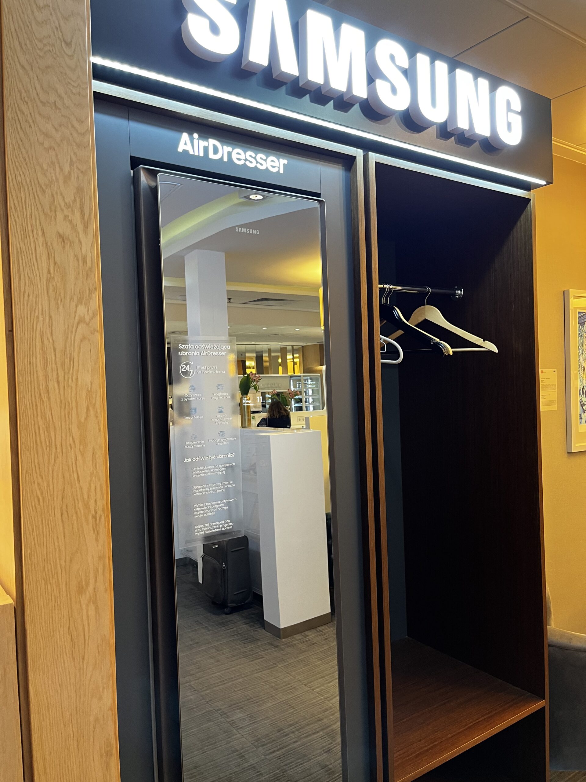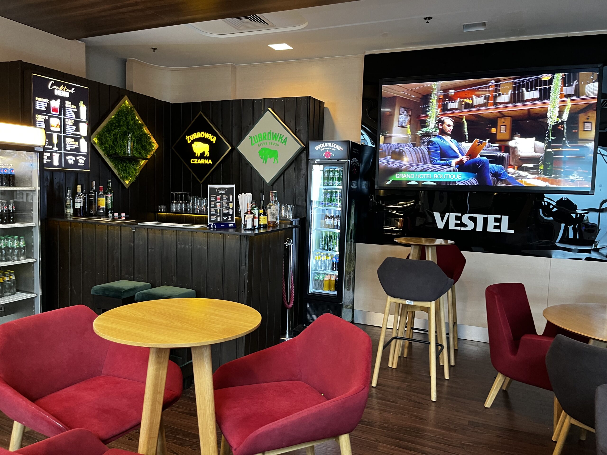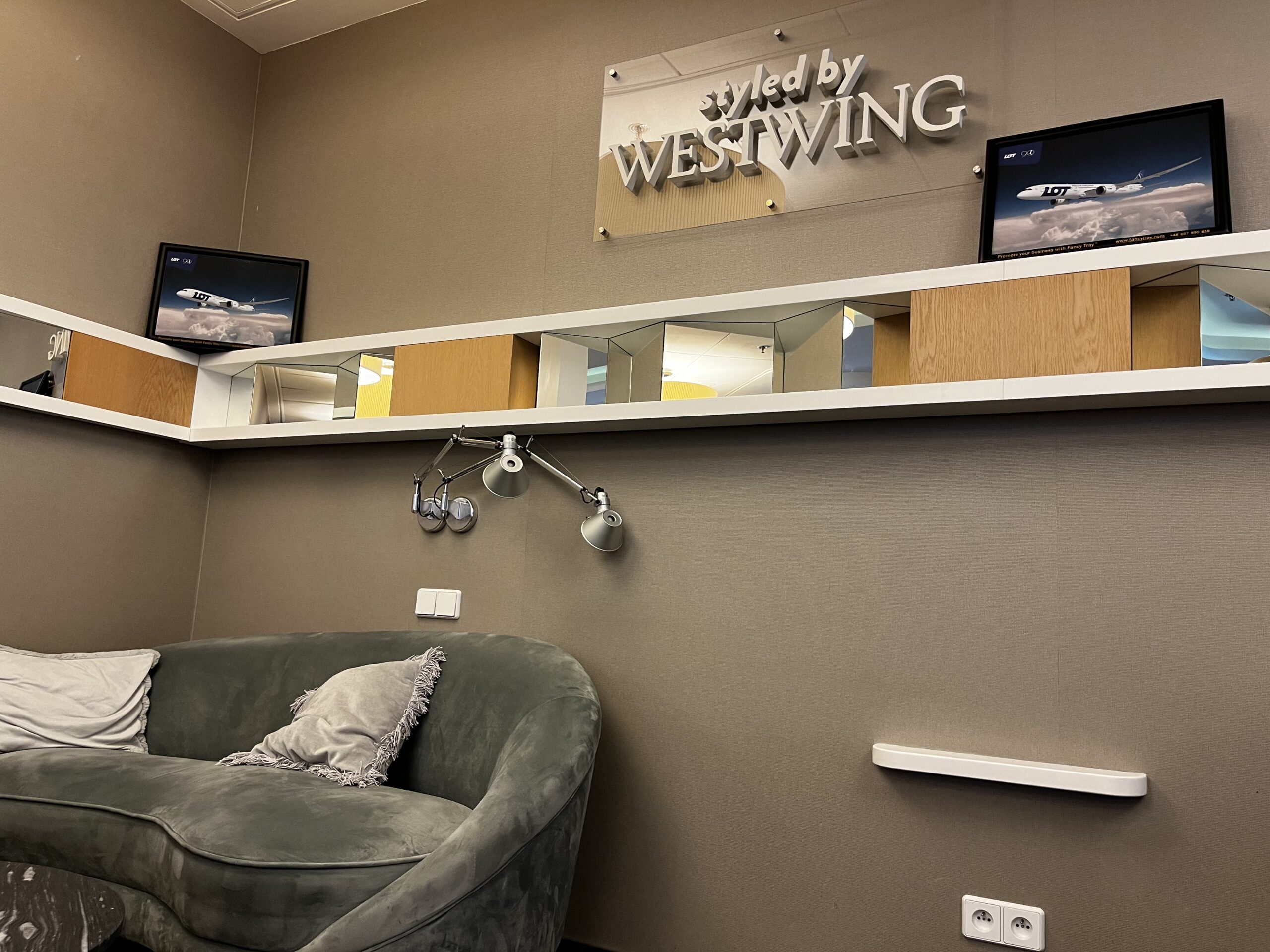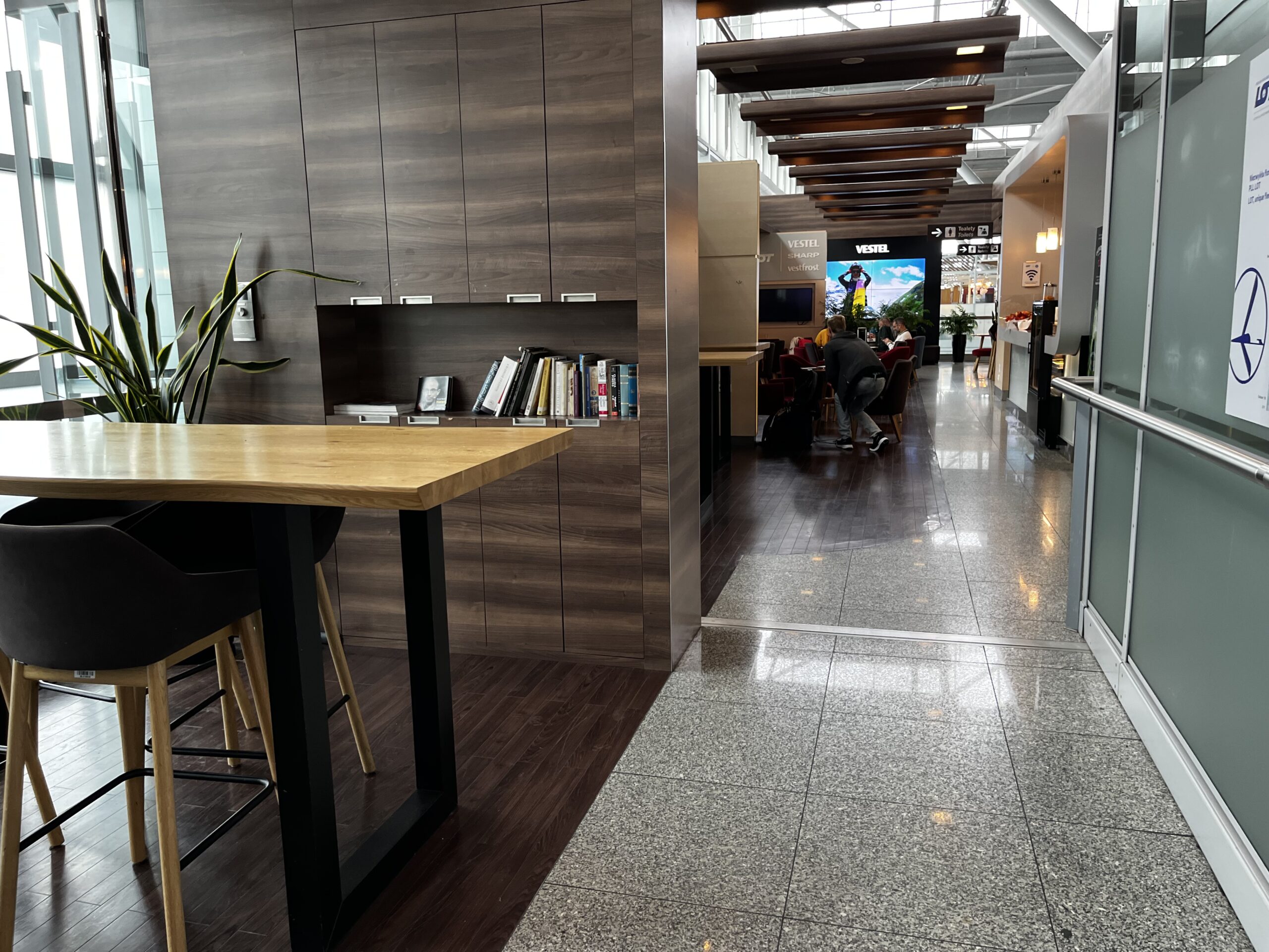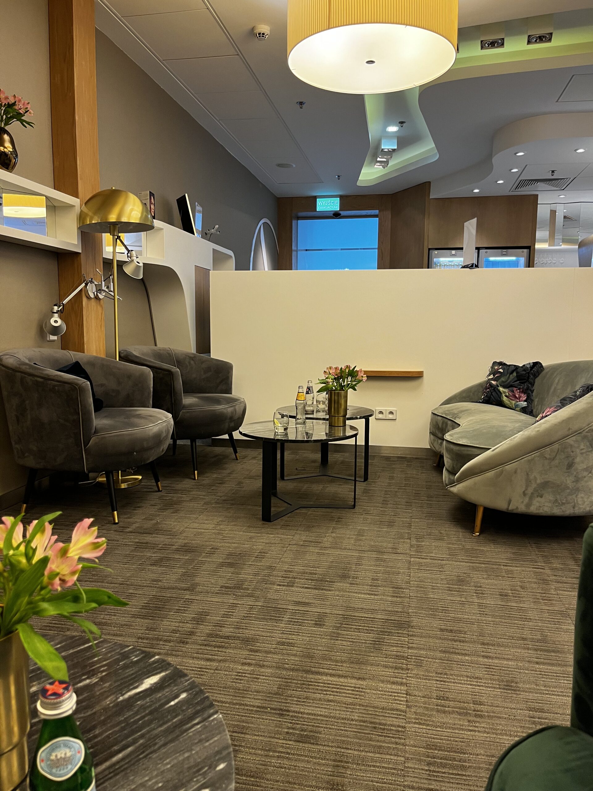 Lounge in der Lounge ist ein nettes Extra — gutes Essen, ruhige Arbeitsbereiche, für Warschau mehr als solide.