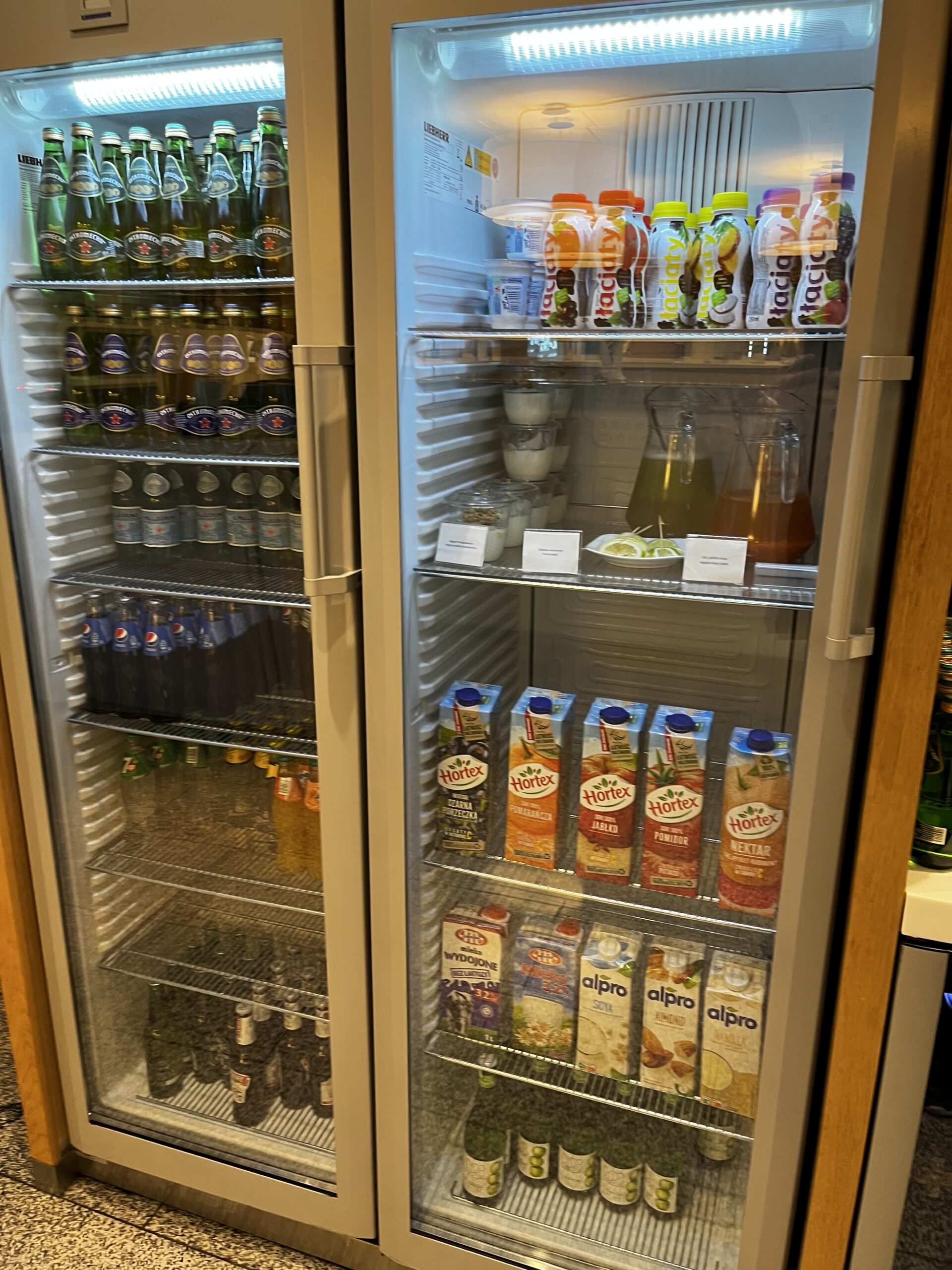 Auf der linken Seite hat es Getränke und Speisen. Dahinter hat es dann einige Sitzmöglichkeiten. Grundsätzlich muss ich schon sagen, dass das Angebot an Speisen und Getränken wirklich gut ist.
