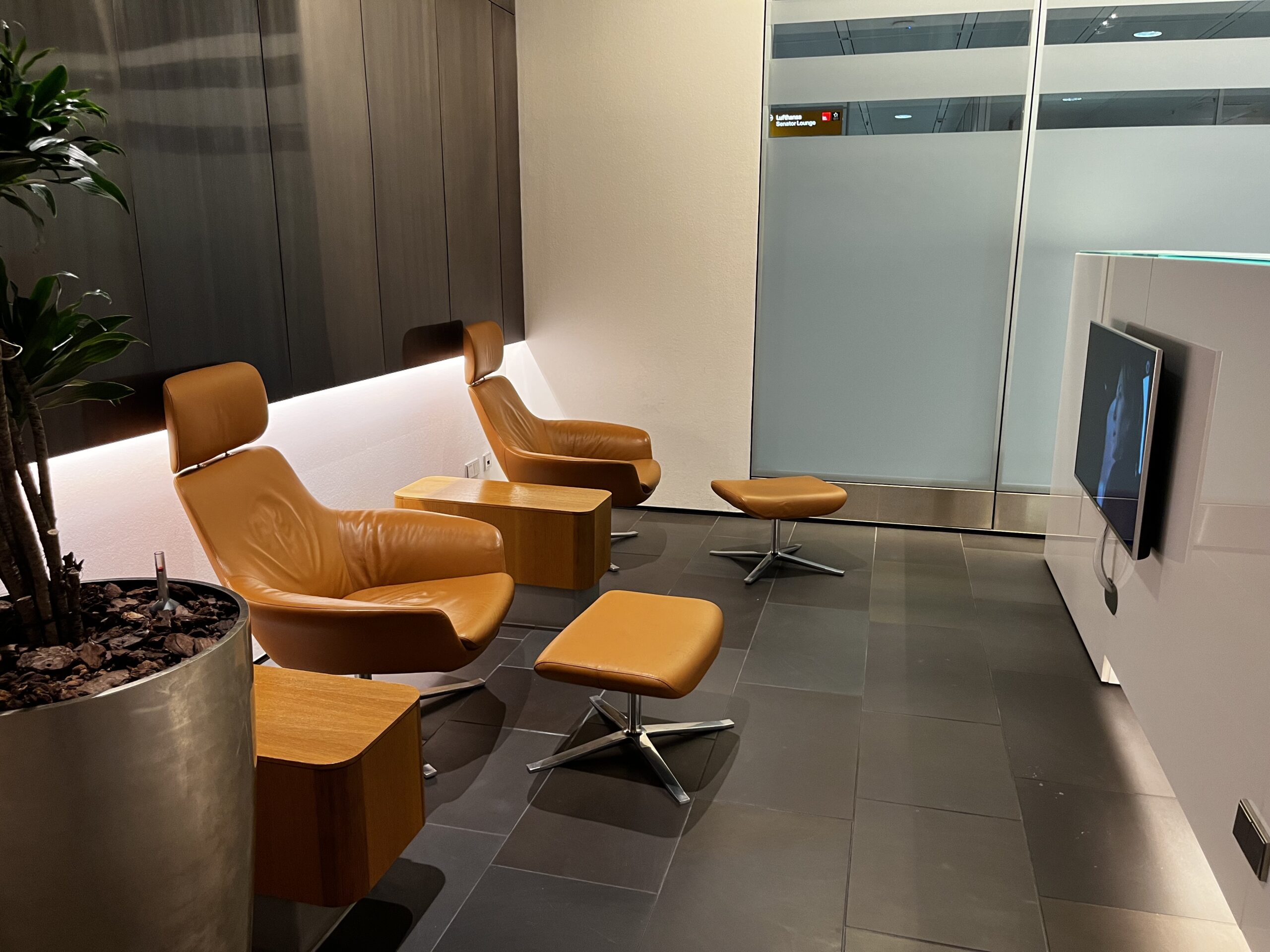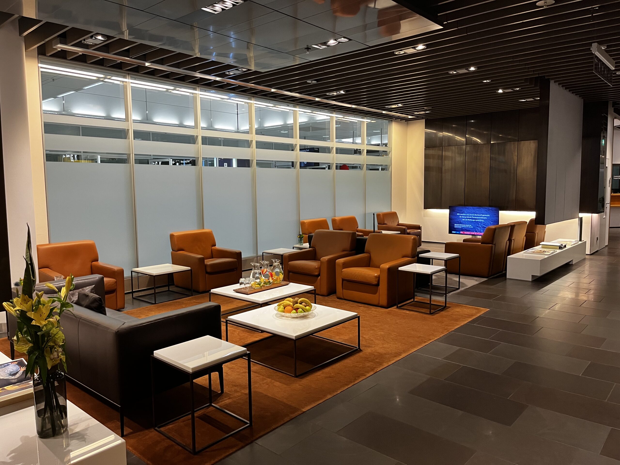 Die typischen Lufthansa Sitze dürfen natürlich auch nicht fehlen. Aufgrund der grösse der Lounge sind hier zwar grundsätzlich genügend Sitze vorhanden, allerdings habe ich den Eindruck alle Möbel stehen etwas enger beieinander.