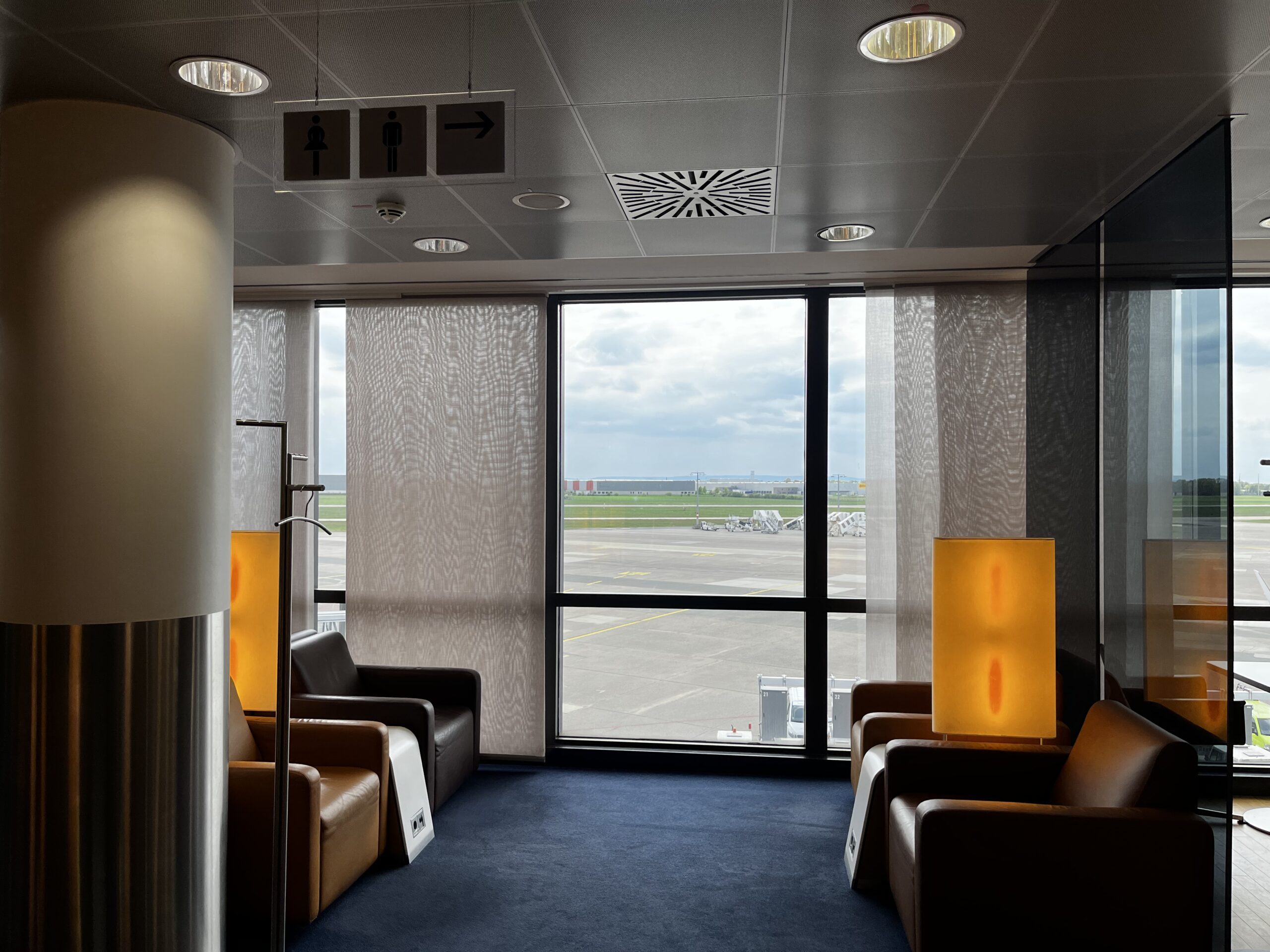 Es hat Toiletten in der Lounge, die aber meiner Erfahrung nach schon lange eine Renovierung bedürfen.