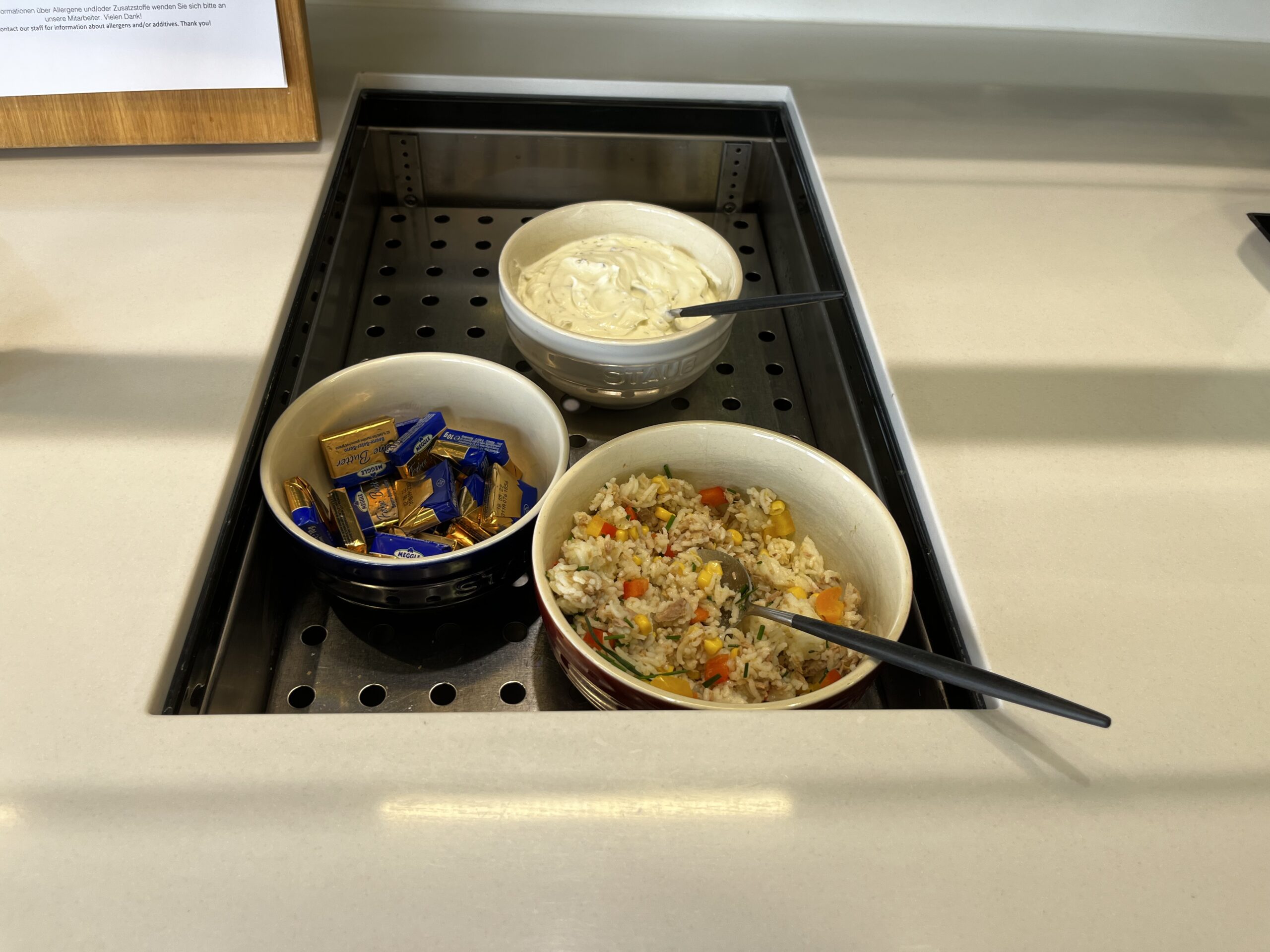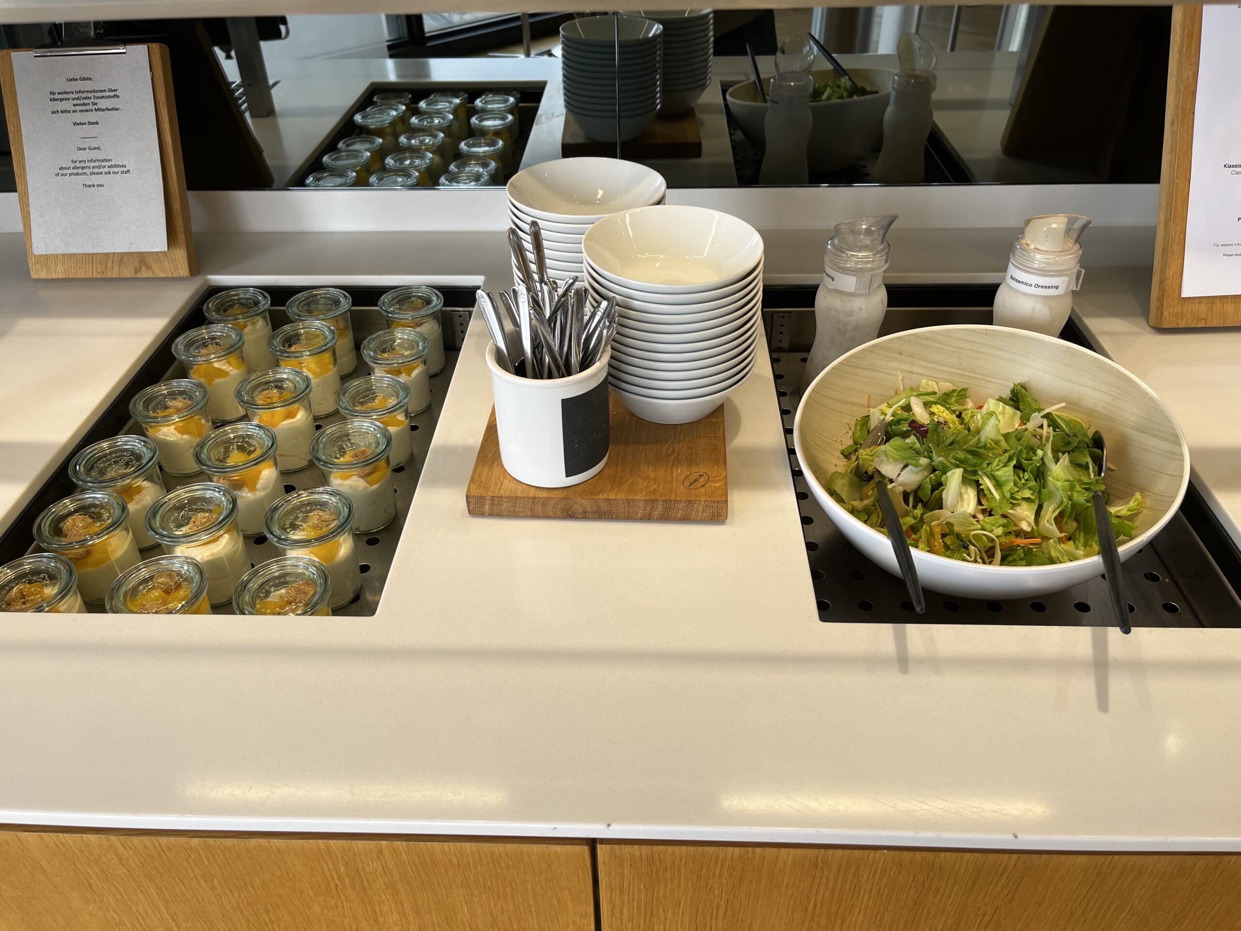 Um die Wartezeit für den (Weiter)Flug zu überbrücken ist die Lounge wirklich ausreichend. Persönlich würde ich mir eine Renovierung der Toiletten wünschen. Die Auswahl an Speisen ist wirklich ausreichend für die Wartezeit am Flughafen.