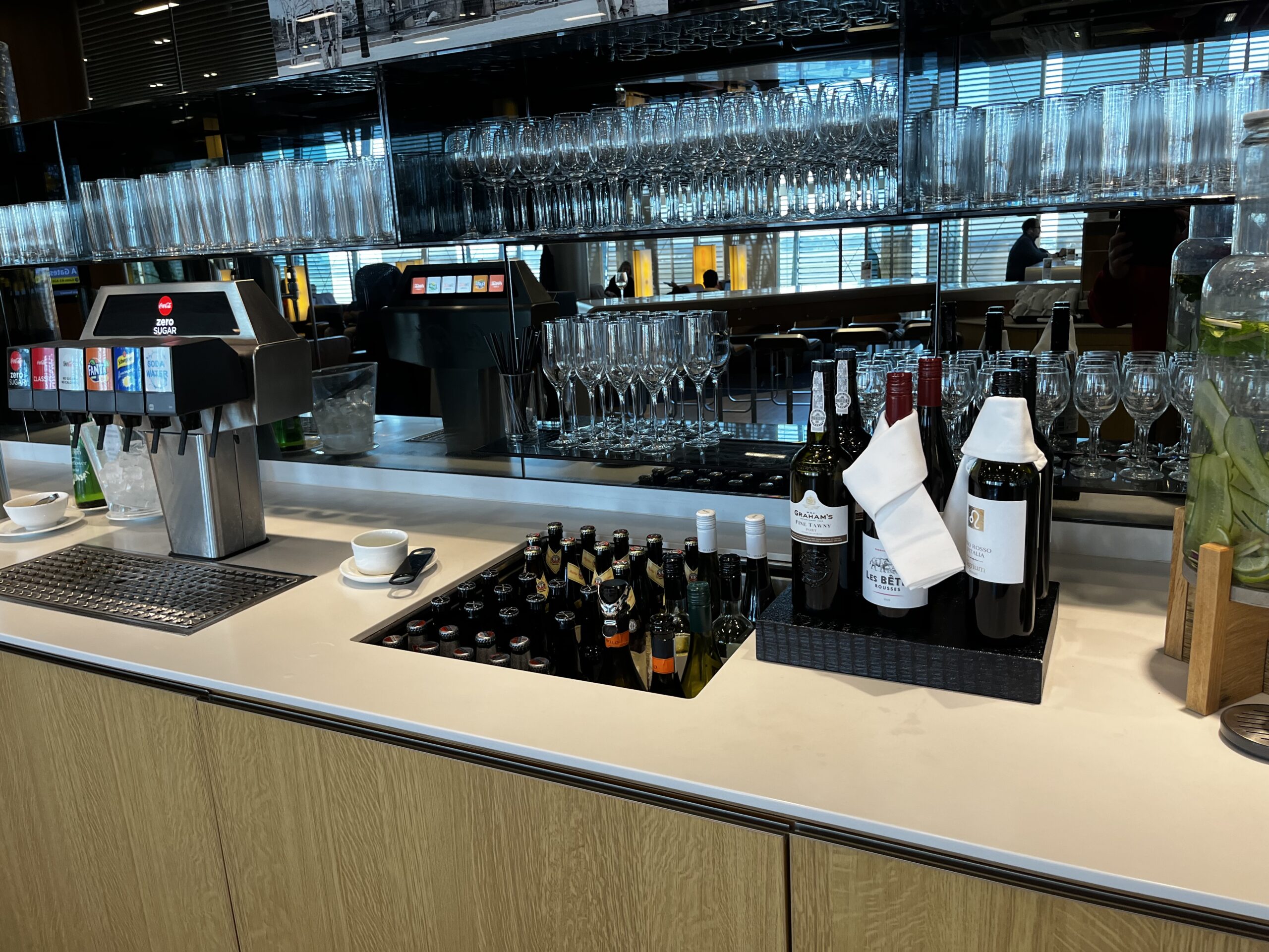 Durch das bessere Catering sicherlich eine der besseren Lounges der Lufthansa bei der ich immer gerne einen Stopp einlege. Die Auswahl an Speisen/Getränken ist überdurchschnittlich gut, manchmal kann es aber auch eng werden und wenig Platz haben.
