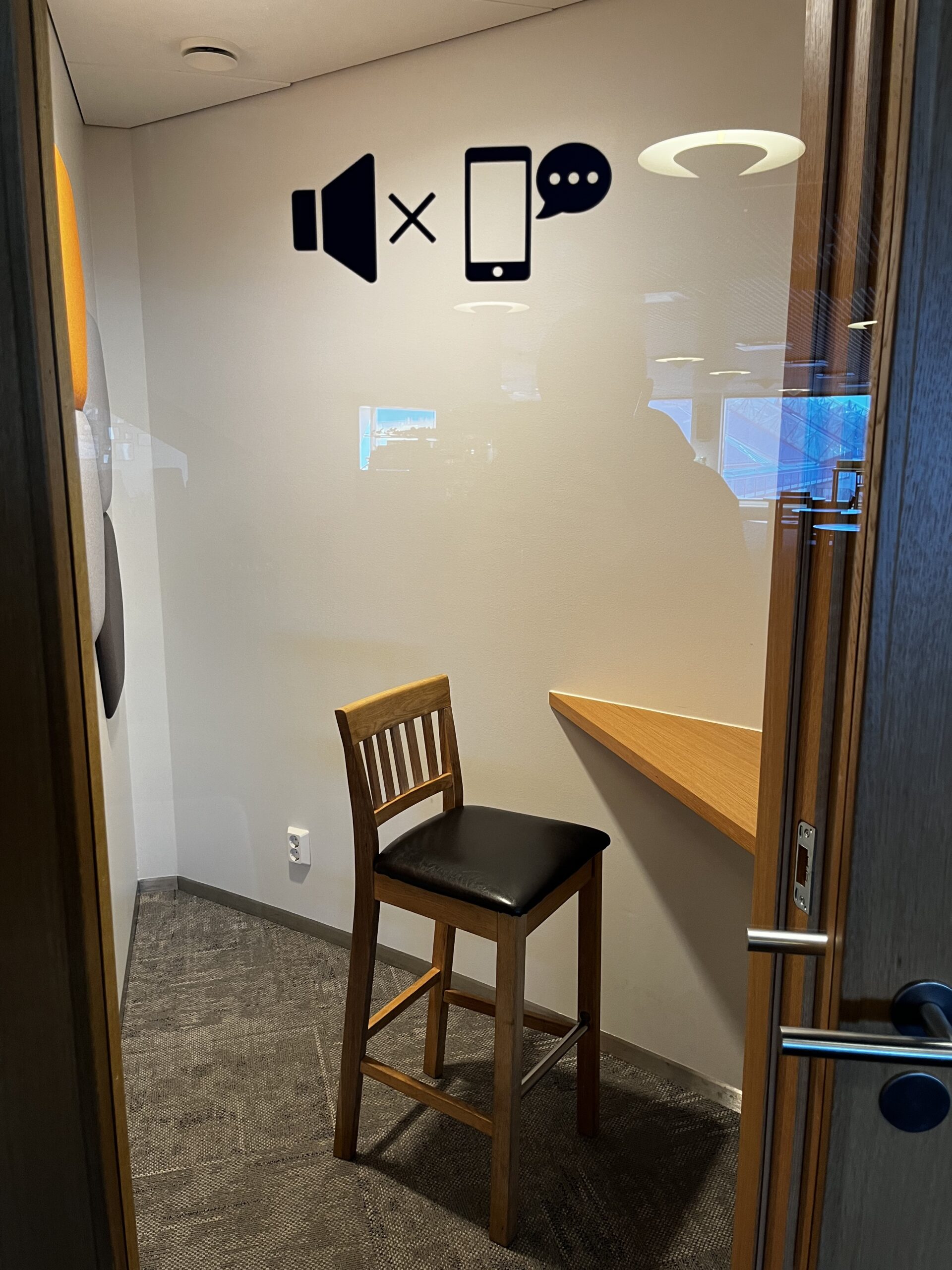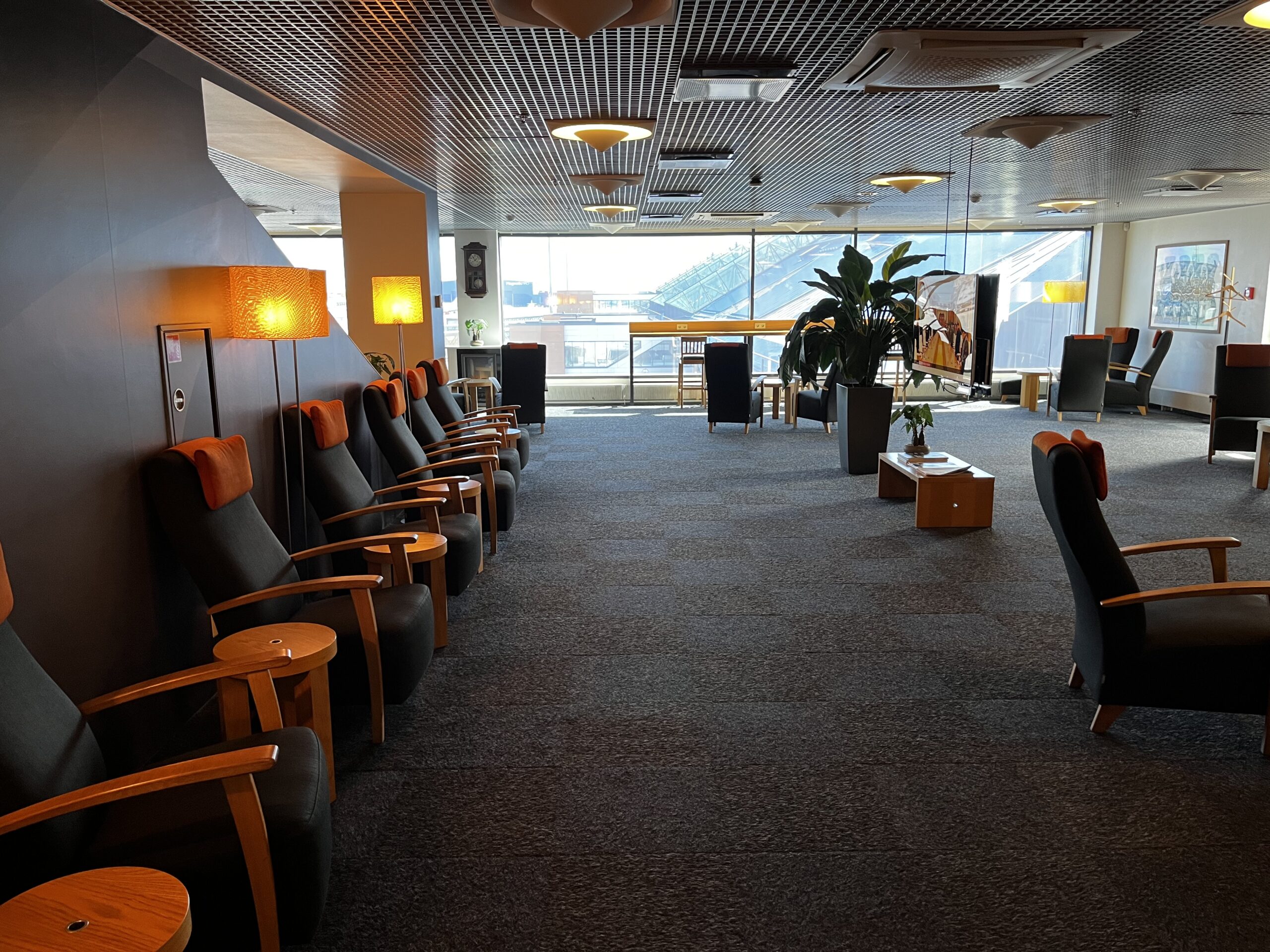 Kleine, funktionale Lounge mit toller Vorfeld-Aussicht — Essen und Getränke solide, aber nichts Besonderes.
