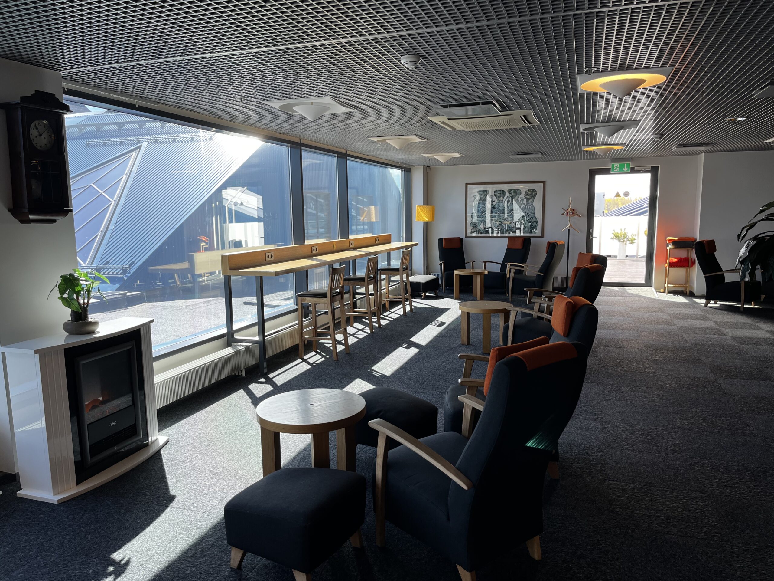 Wie so oft besteht diese Lounge grundsätzlich nur aus einem grossen Raum, dazu kommen aber noch abgetrennt zwei kleine Arbeitsbereiche, wie auch ein Sitzungszimmer.