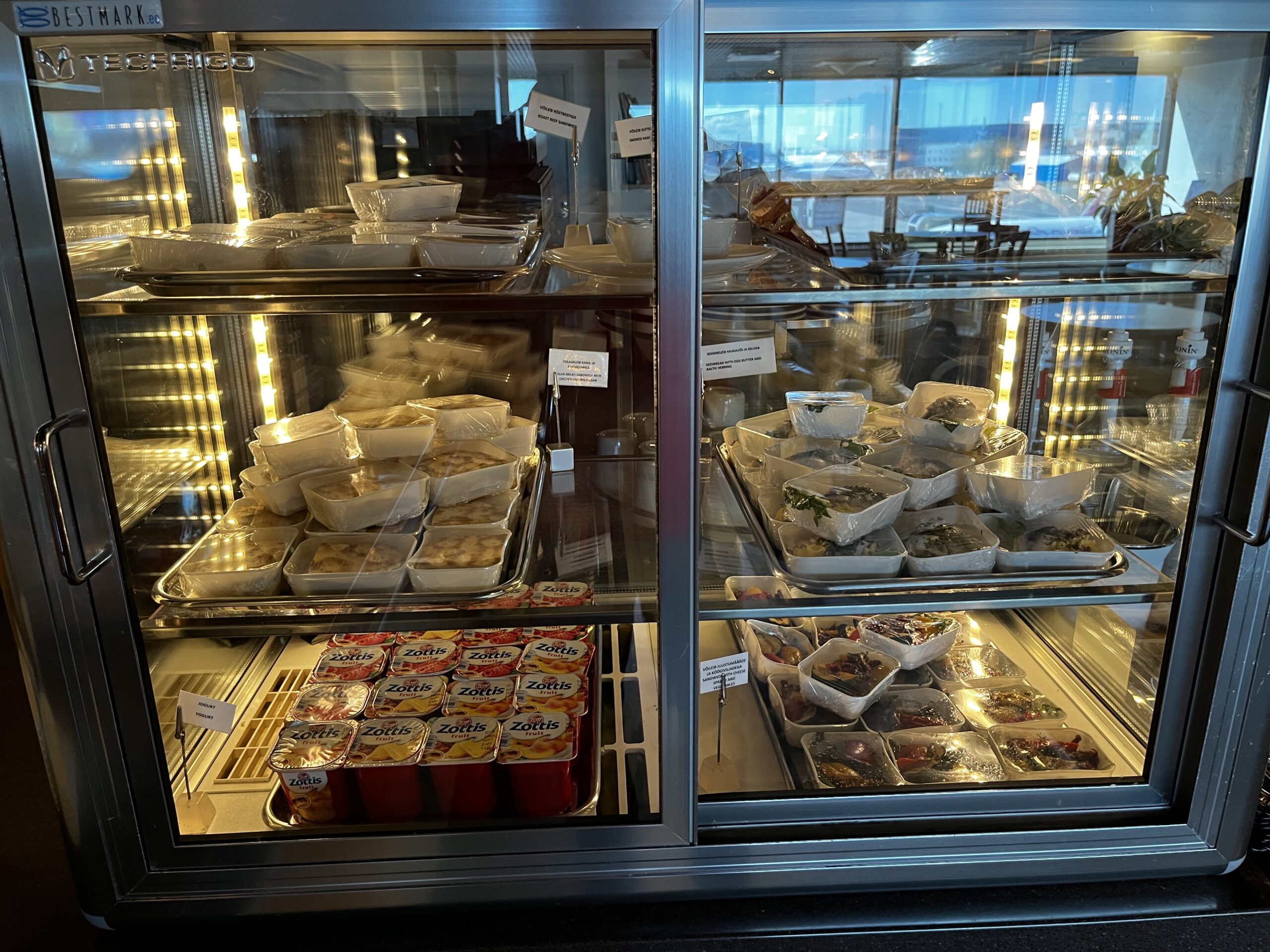 Dazu hat es noch eine Salatbar, wie auch kleine Sandwiches in der Lounge die ich als ausreichend beschrieben würde. Kaffee, Cola etc kann man sich im selbst aus dem Kühlschrank nehmen oder am Kaffeeautomat machen.