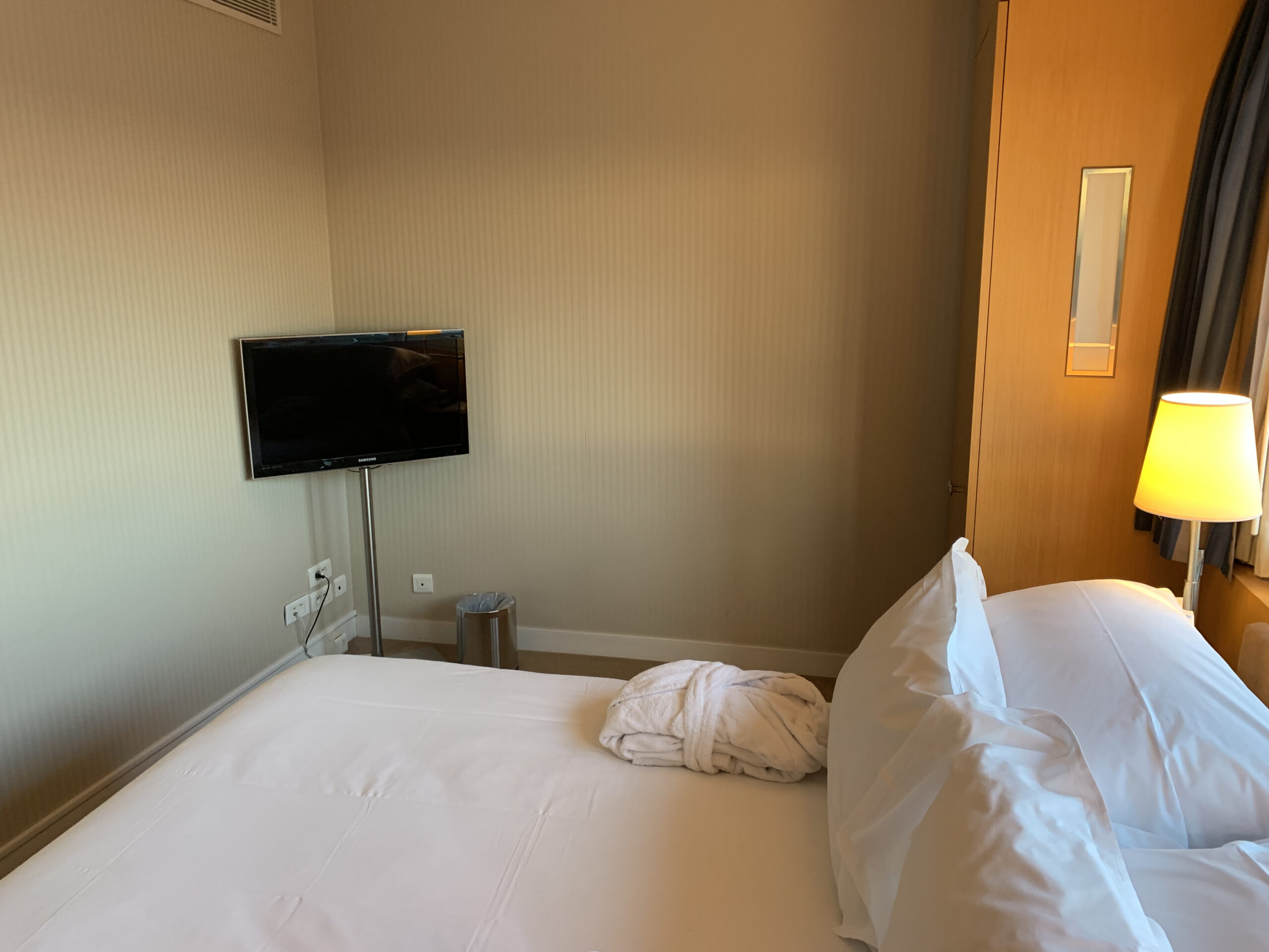 Das Schlafzimmer hatte neben einem bequemen Bett (ich finde die Betten bei Sheraton wirklich gut), noch zwei Schränke mit einem Safe und auch einem Bügelbrett und noch ein TV. Am Abend wurde sogar ein Turn Down Service angeboten. Auch wartete am Abend noch eine Kleinigkeit zum Essen auf mich mit einer Karte. Eine Geste die ich immer schätze.