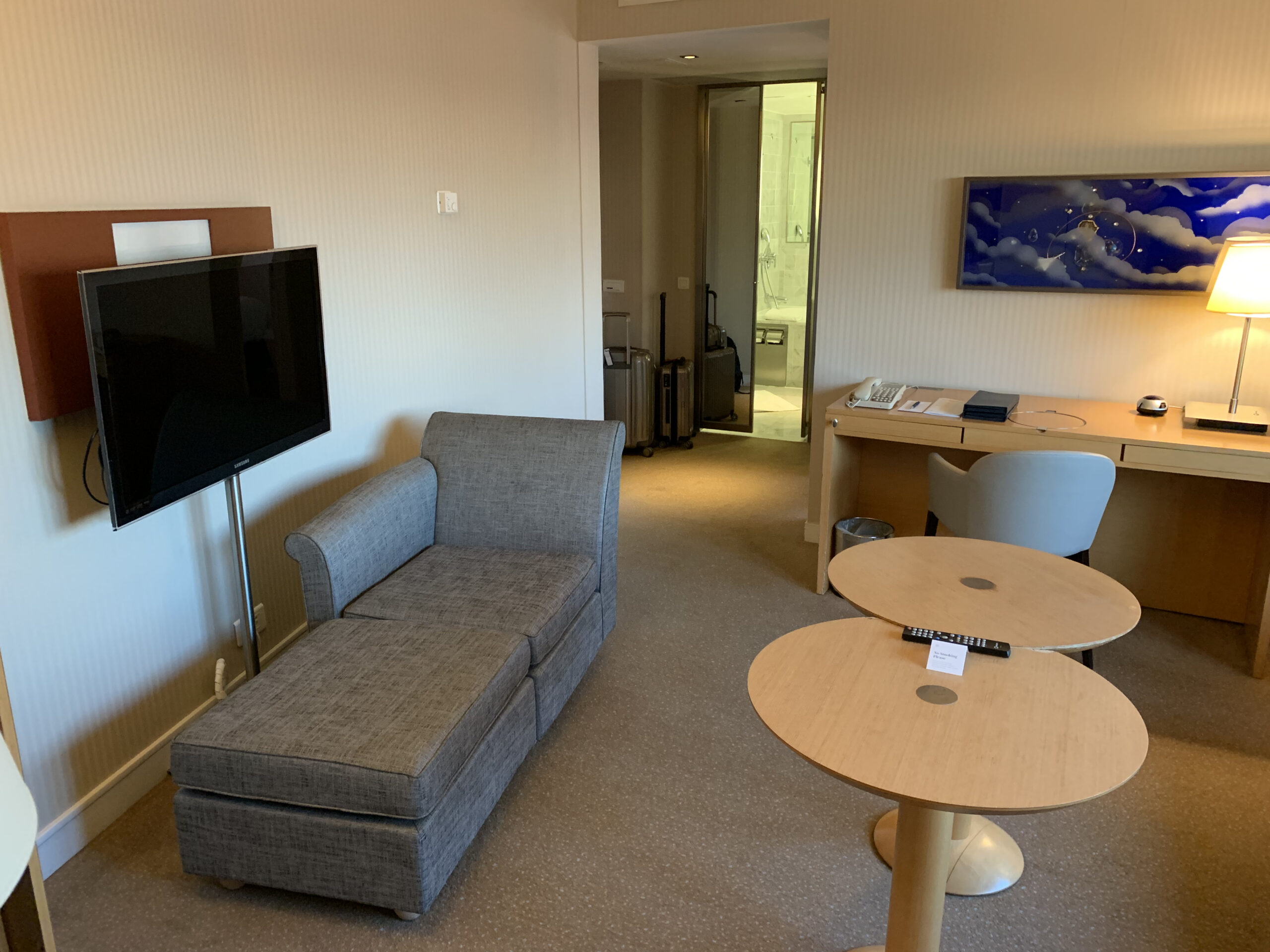Das andere Zimmer hatte dann neben einem Sofa, und einer (meiner Meinung nach deplatzierten) Sitzecke noch einen Arbeitsplatz, sowie zwei TVs.