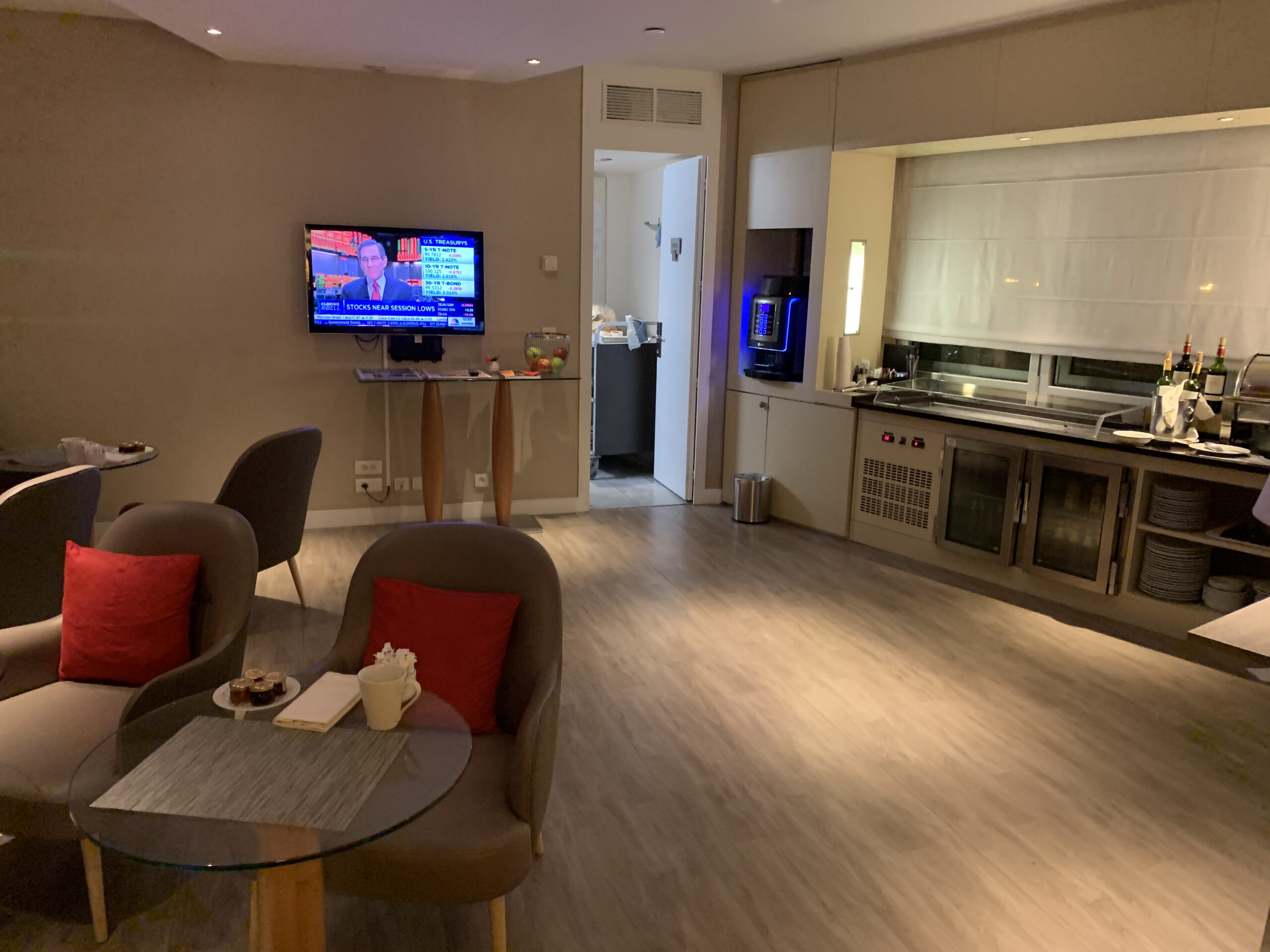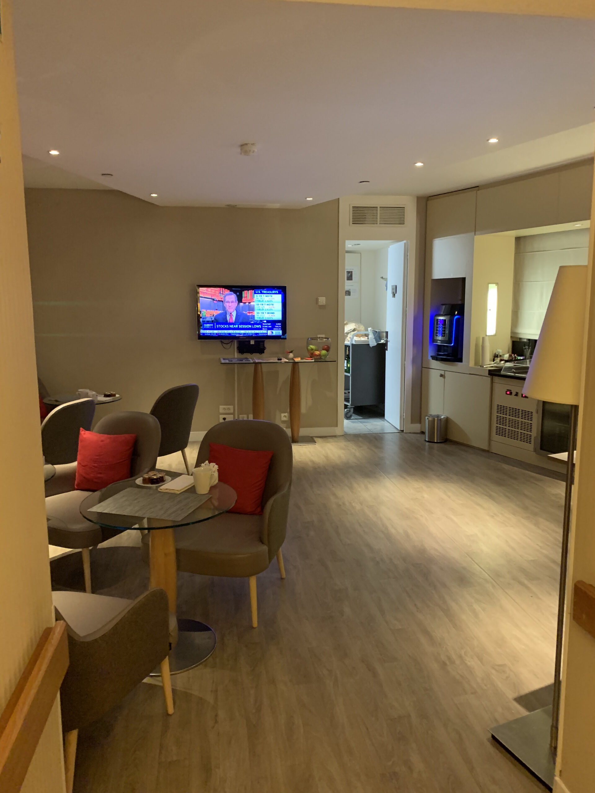 Die Lounge ist übrigens nicht sonderlich gross, man merkt dass hier einfach zwei Zimmer umgebaut wurden. So hat es einen doch etwas sehr dunklen separaten Raum der auch als kleines Business Center dient.