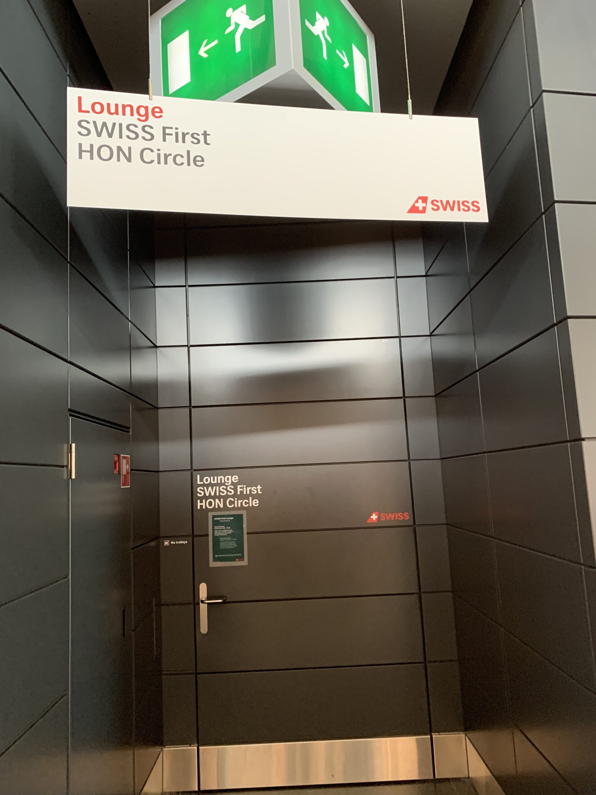Nun hier bin ich sehr ehrlich, eigentlich habt ihr drei Zugänge zur Swiss First Class Lounge. Einer ist der einfachste über die Rolltreppe aus dem Terminal A, hier habt ihr auch eine private Sicherheitskontrolle. Dann noch zwei weitere wenn ihr Airside seid. Einmal die kleine und unscheinbare Tür neben der Senator/Business Class Lounge, oder mit dem Lift via Alpine Lounge, dann aber links abbiegt. Klingt alles schwieriger ist als es ist. Dennoch möchte ich auf diese Möglichkeiten aufmerksam machen.