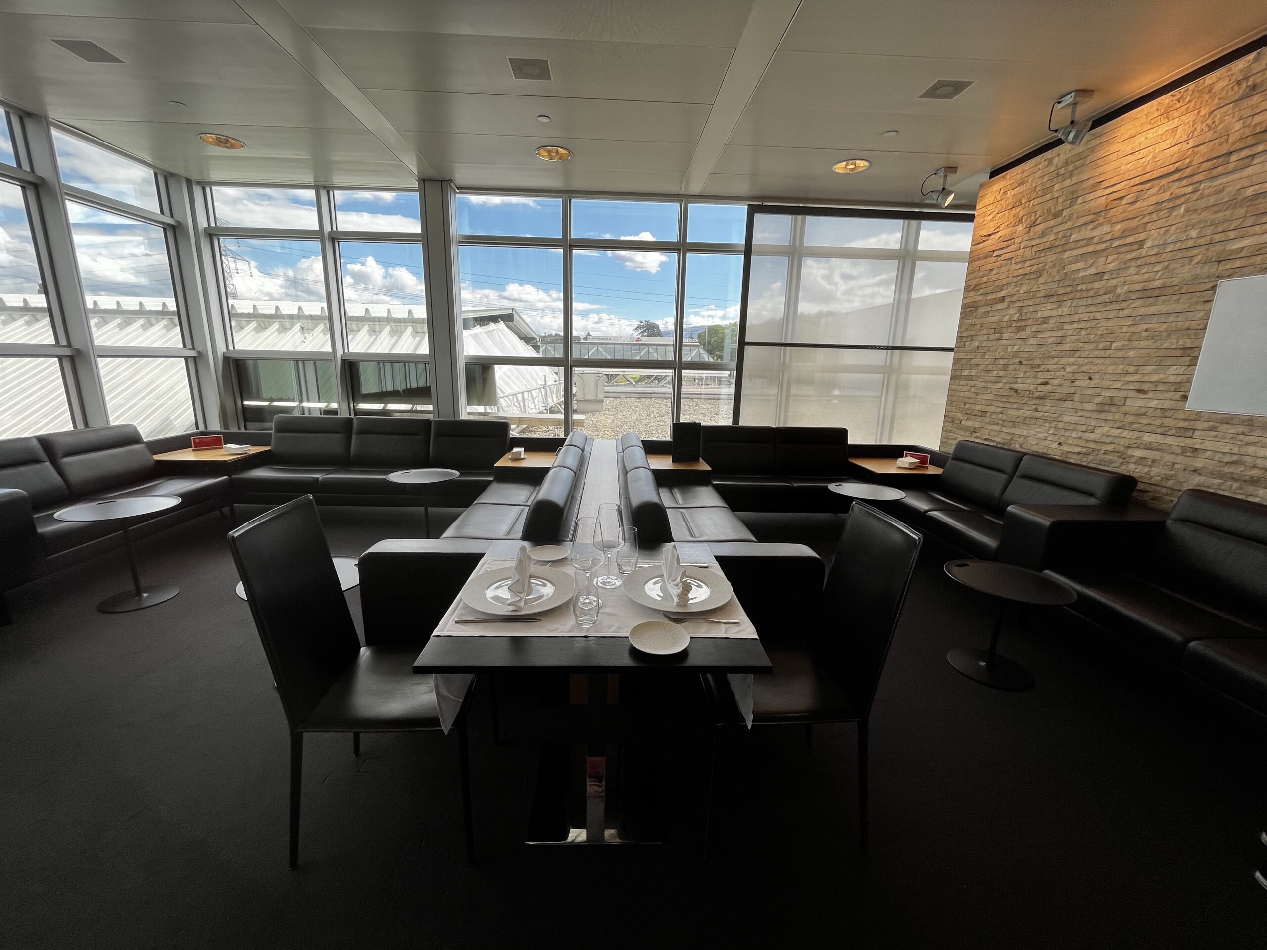 Wasserschaden, aber gut gelöst: Der HON-Bereich in der Business Lounge GVA ist ein würdiger Ersatz — kein Highlight, aber funktioniert.