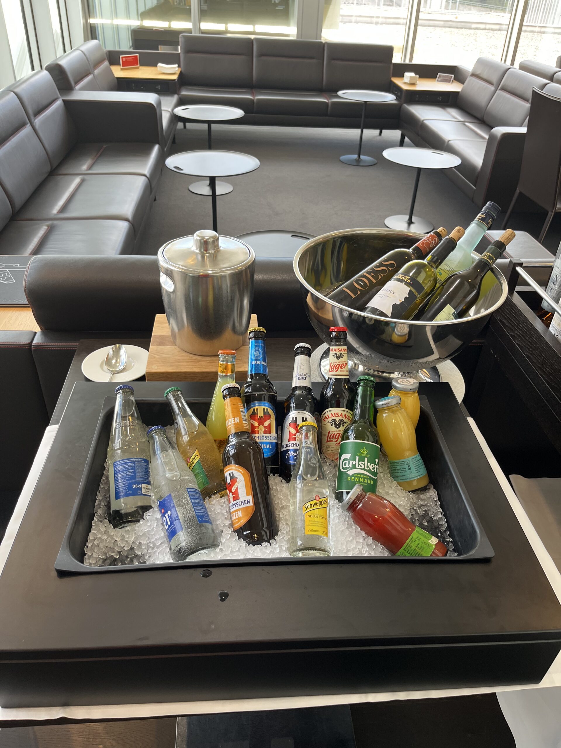 Einer der Gründe via Genf zu fliegen war diesmal auch die HON Lounge dort zu besuchen und einen Review zu schreiben. Leider gab es einige Tage vorher einen Wasserschaden in der Lounge, so dass ich die eigentliche HON Lounge nicht besuchen konnte. Allerdings hat man die Situation meiner Meinung sehr schön gelöst, und hat einen separaten Bereich in der Business Class Lounge abgesperrt und man kann dort verweilen.