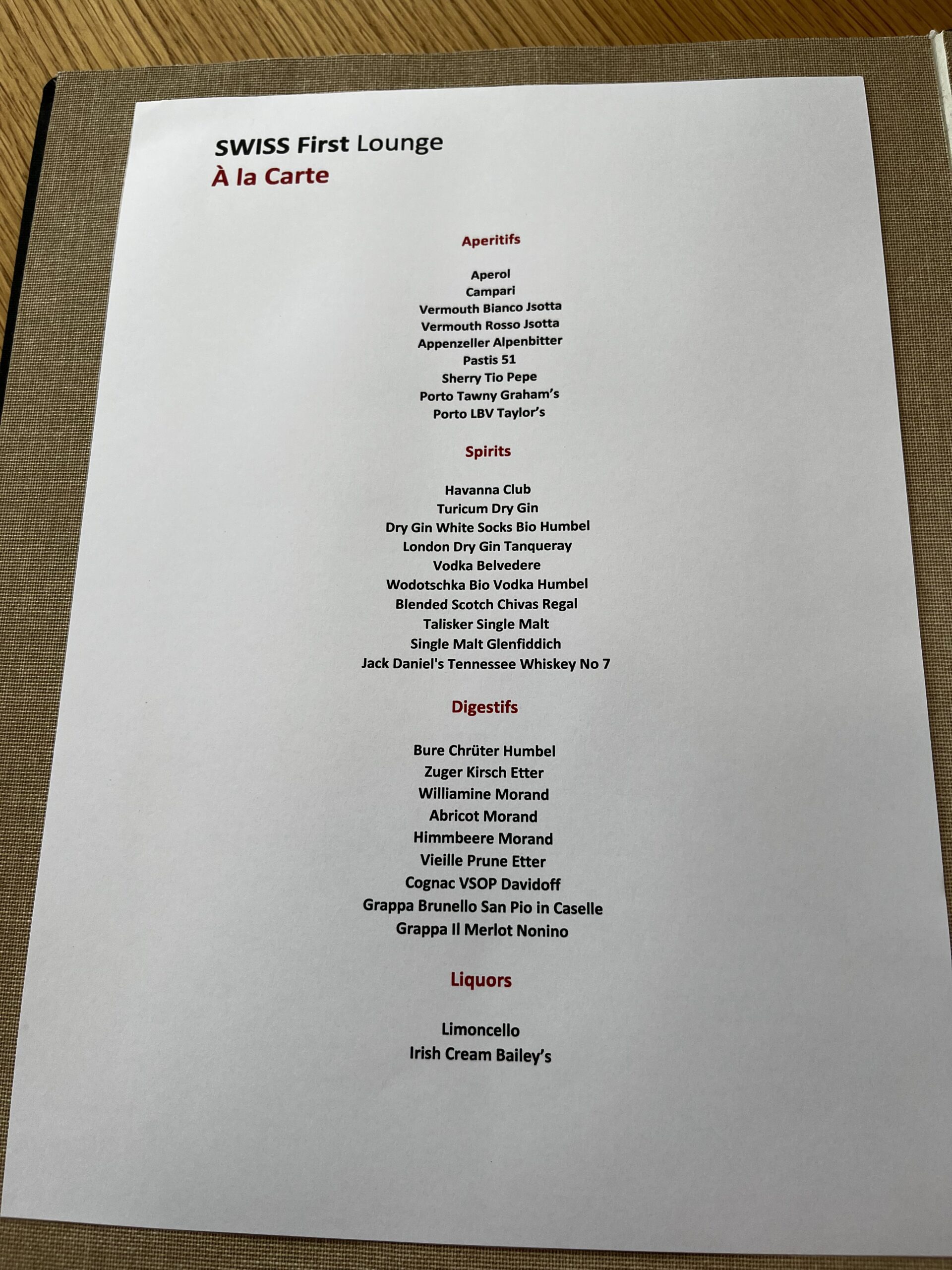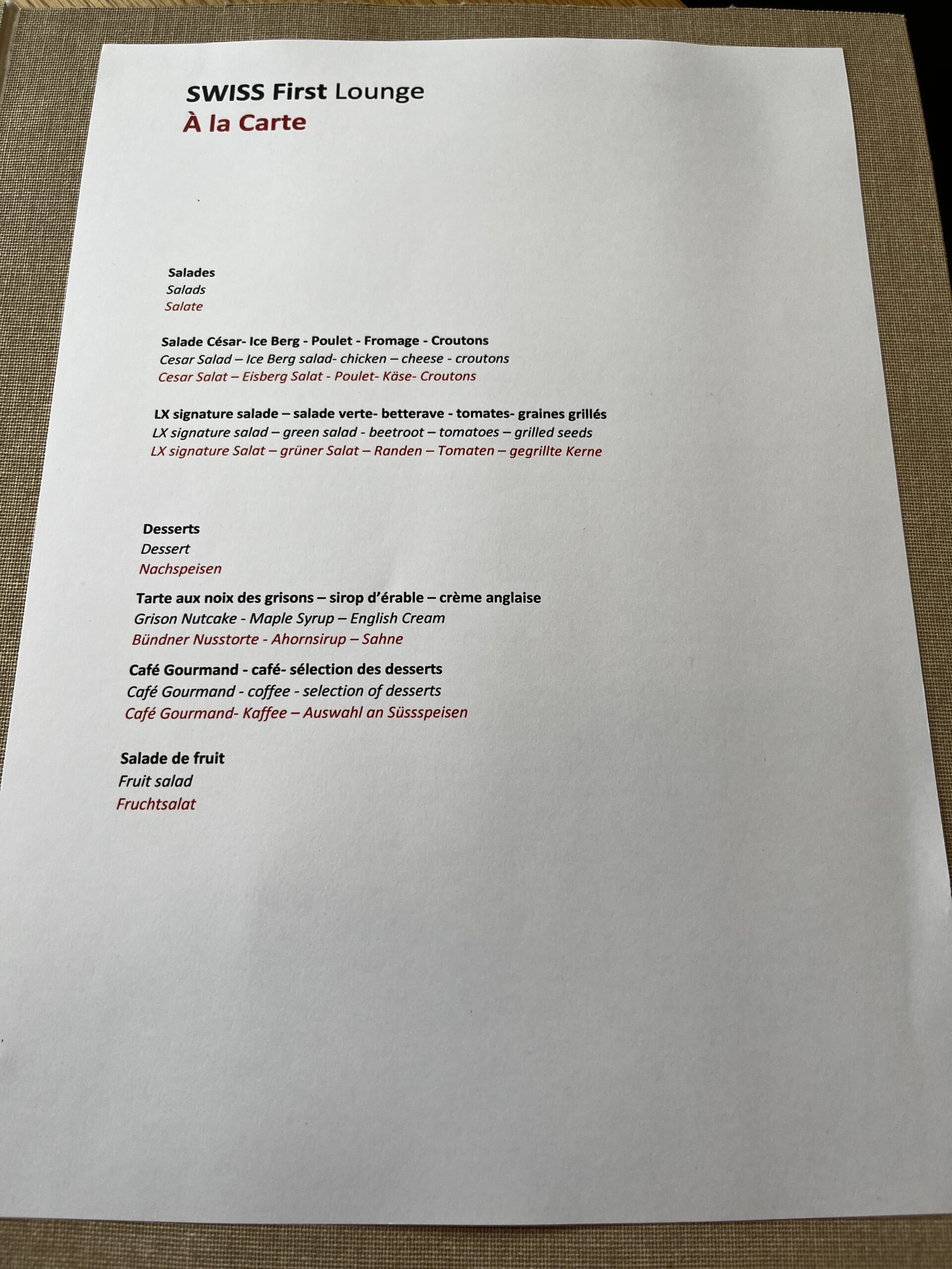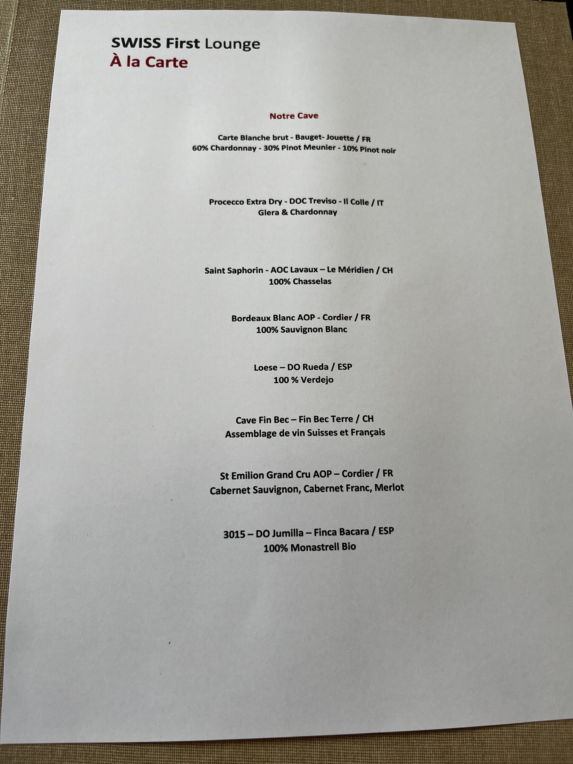 Die aktuelle Speisekarte habe ich hier mal fotografiert, sie ist leider nicht so umfangreich wie man es sonst bei der Swiss gewohnt ist.