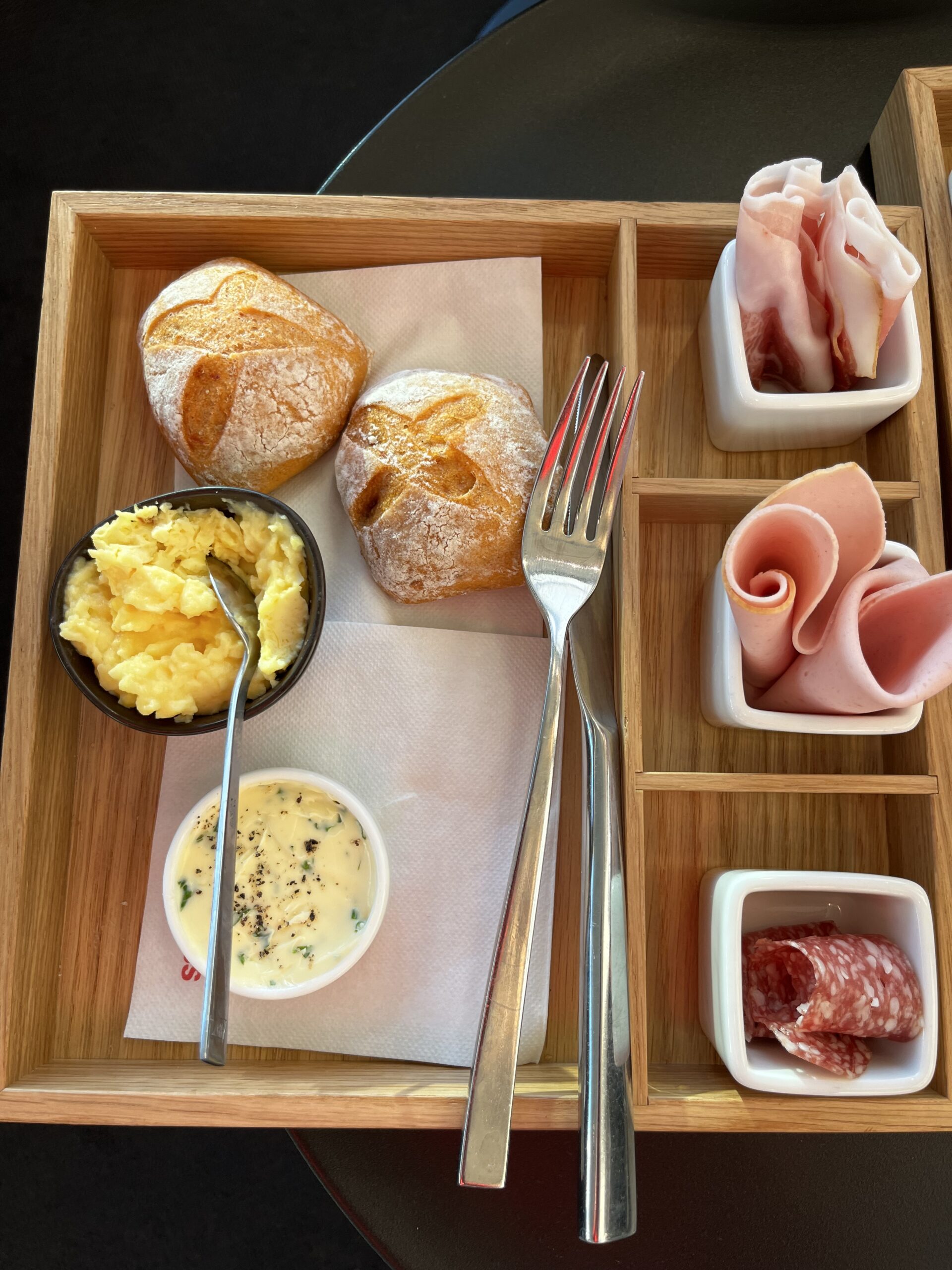 Die Präsentation der Speisen war übrigens sehr schön, auch wenn man bei der Frühstücksauswahl diese einfach teilweise vom Business Class Buffett genommen hat und etwas schöner angerichtet hat. Dies ist keine Kritik, ich denke noch immer, dass man hier versucht hat das Beste aus der Situation zu machen.