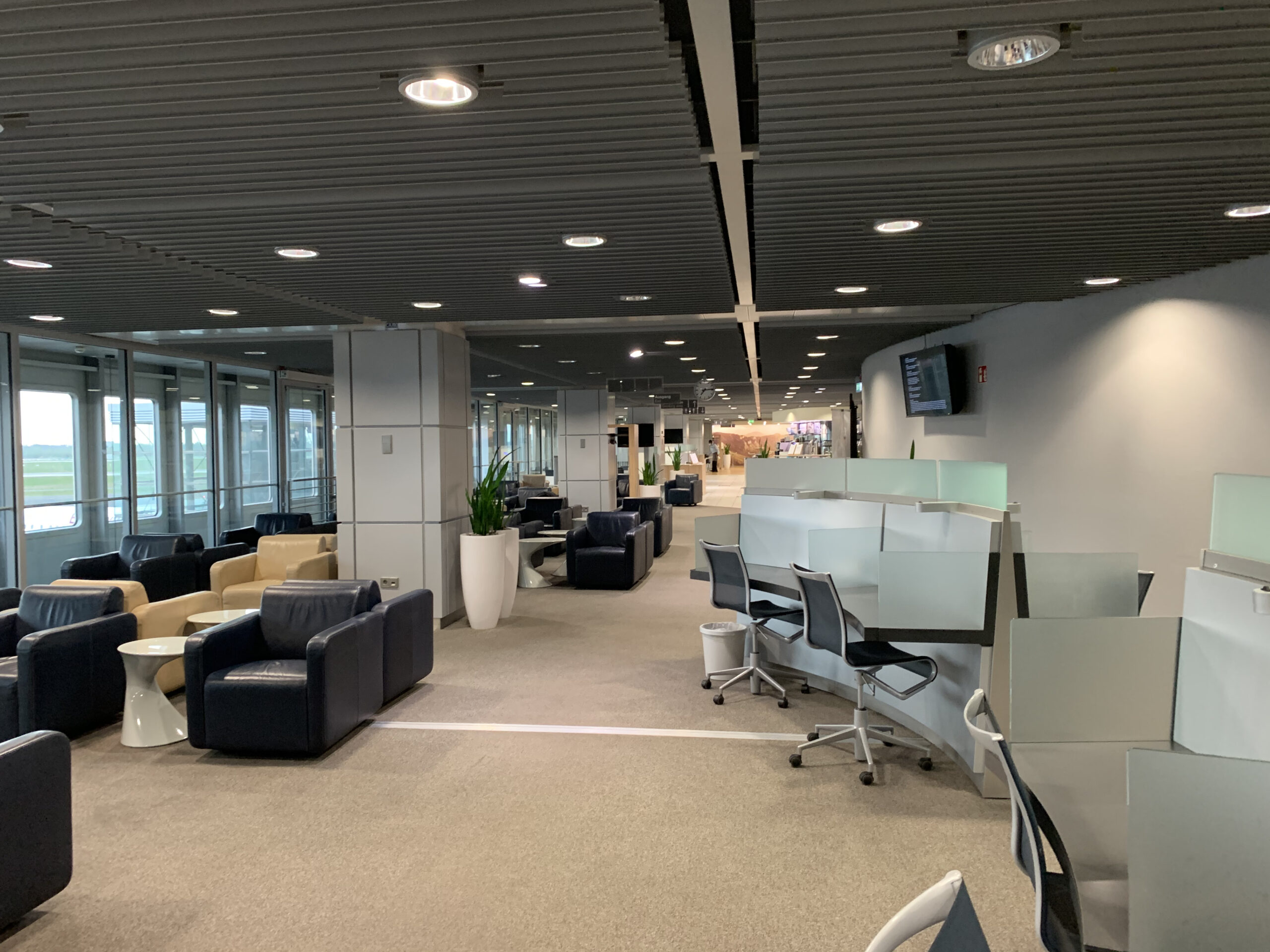 Die Lounge besteht eigentlicher nur aus einem langen Raum der aber mit dem Blick auf das Vorfeld glänzt.